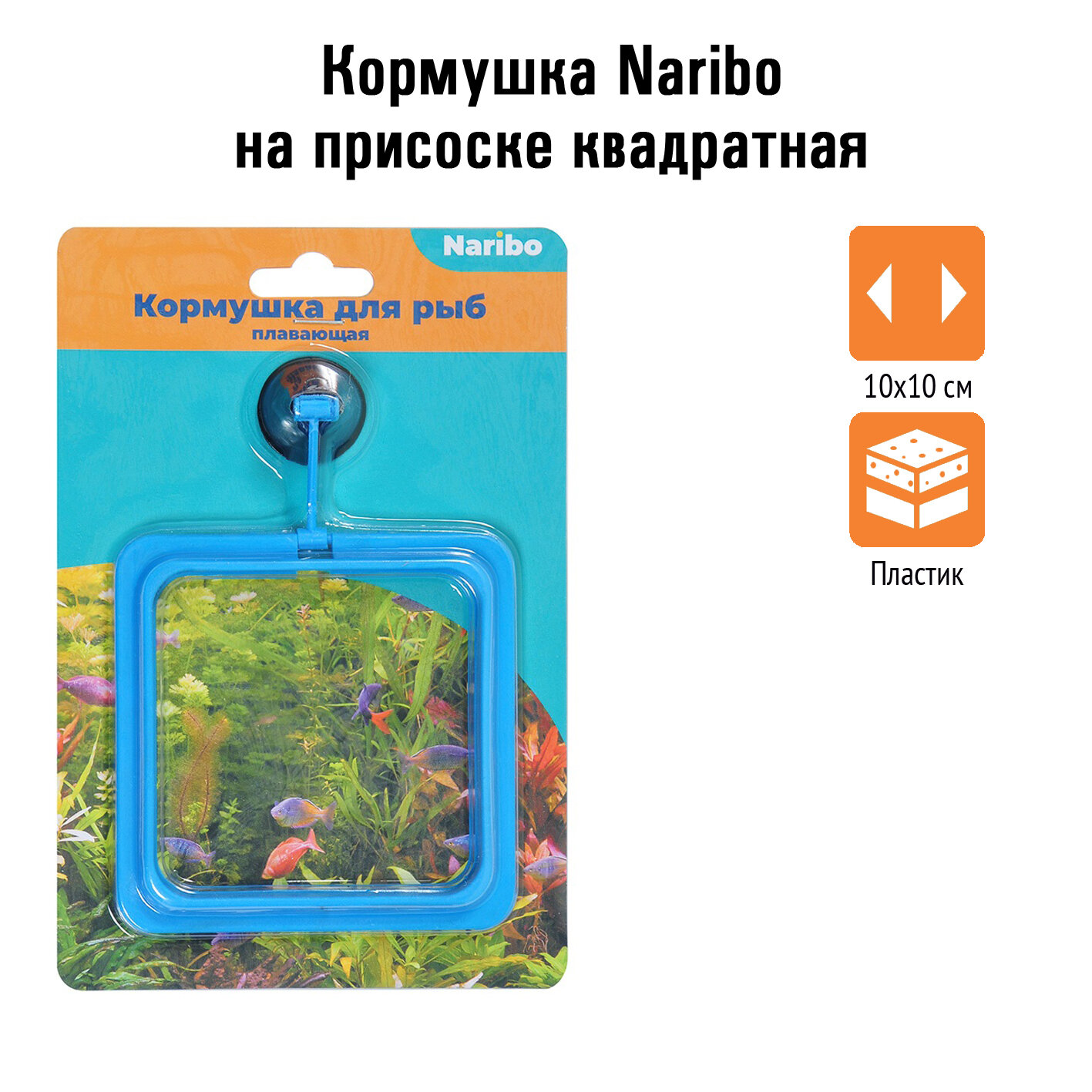 Кормушка для рыб квадратная пластиковая на присоске NARIBO (1 шт)