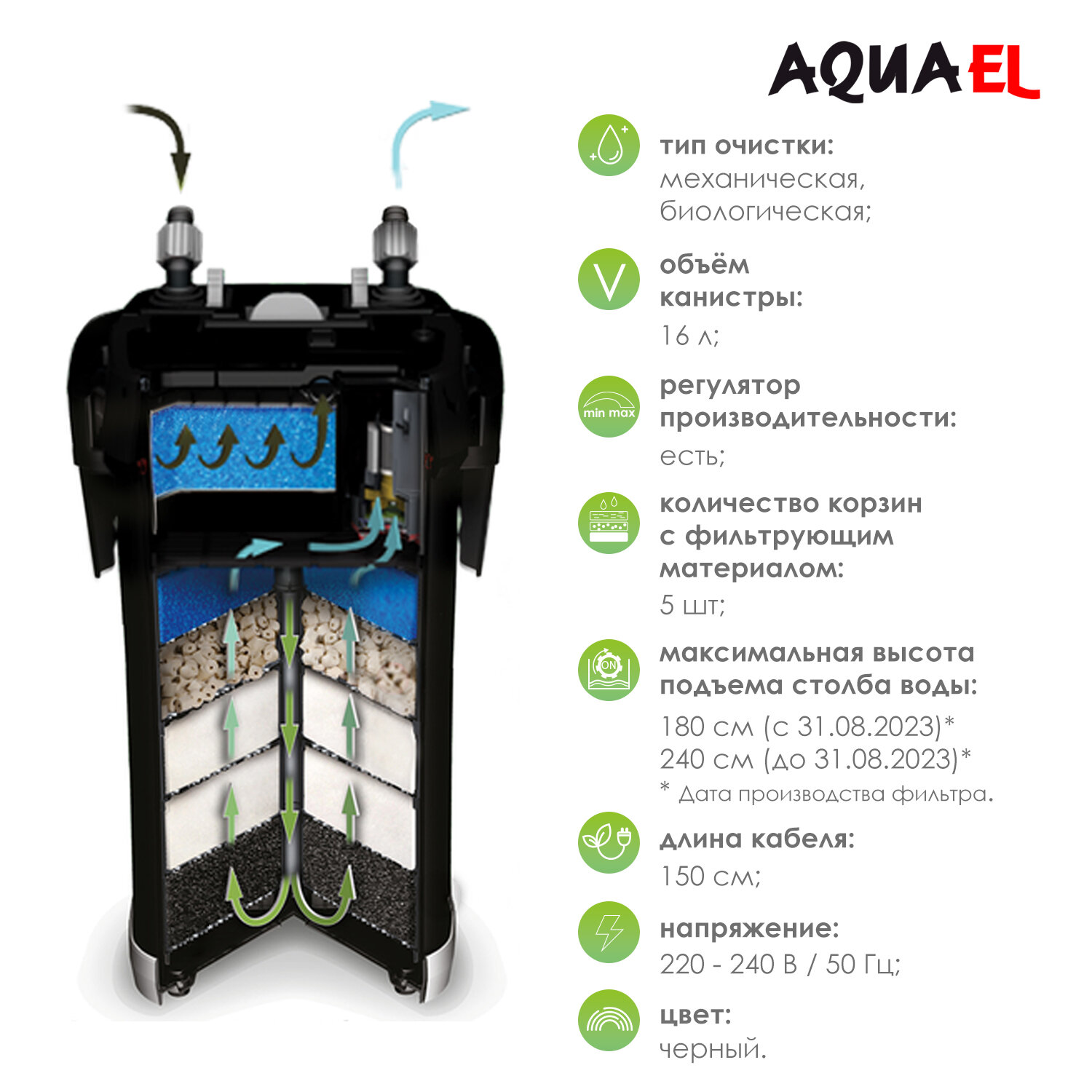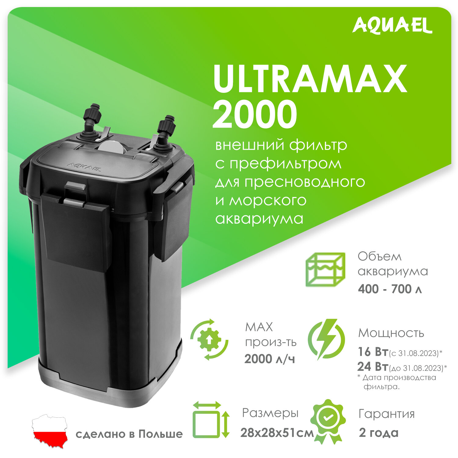 Фильтр внешний AQUAEL ULTRAMAX 2000 для аквариума 400 - 700 л (2000 л/ч, 24 Вт, h = 240 см)