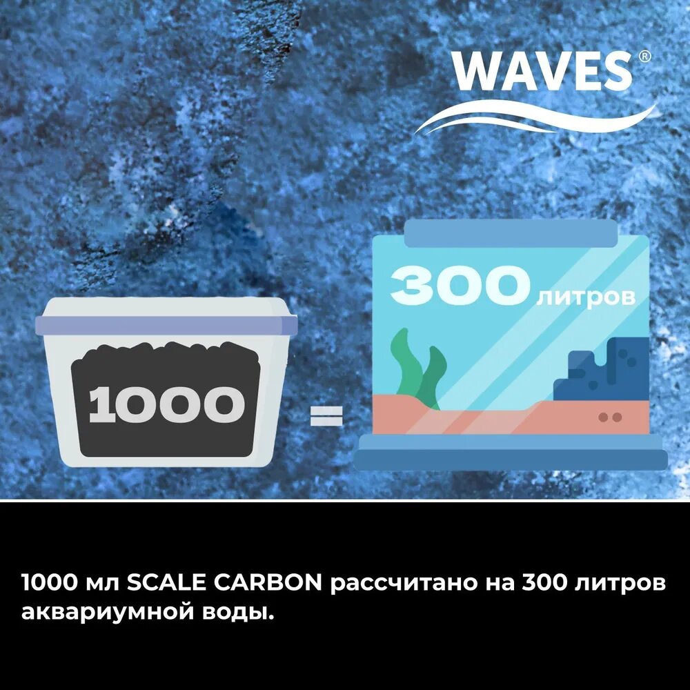 Уголь активированный WAVES Scale Carbon, 1000 мл, гранулированный, гранулы толщиной 1 мм (длина - 1-6 мм), наполнитель для аквариумного фильтра