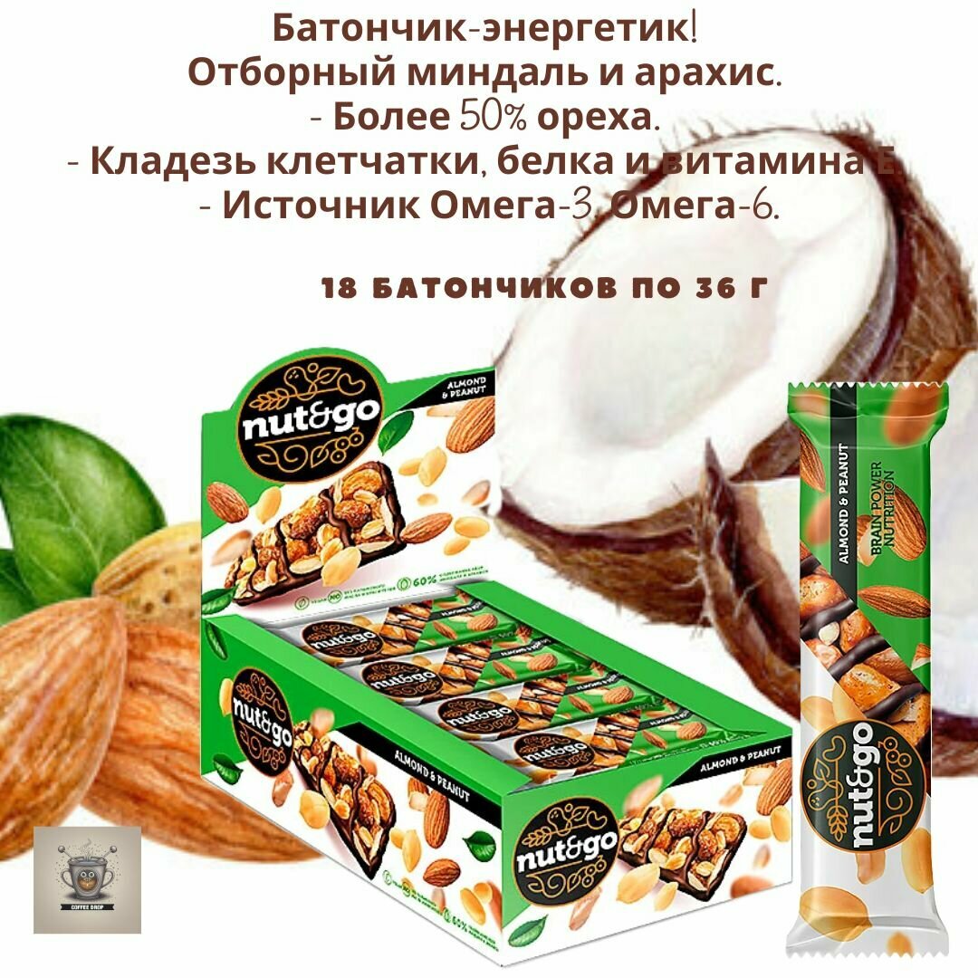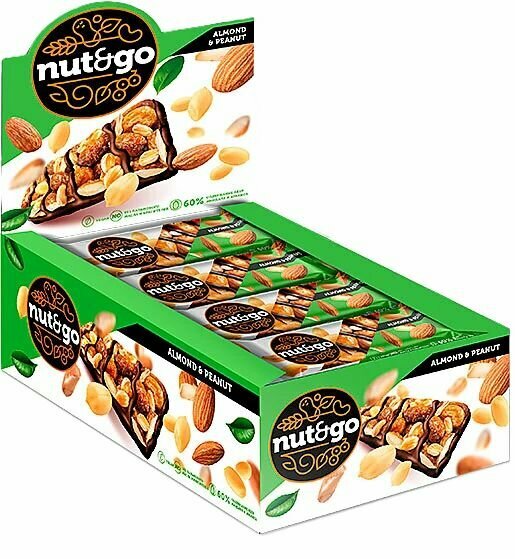 Миндальный батончик NUT&GO с арахисовой пастой 18х36гр