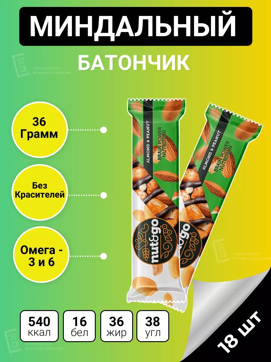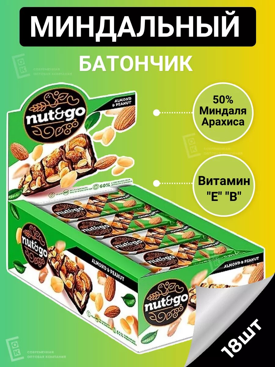 Миндальный батончики Nut and Go Арахисовая Паста 18 шт 36 г интересное: