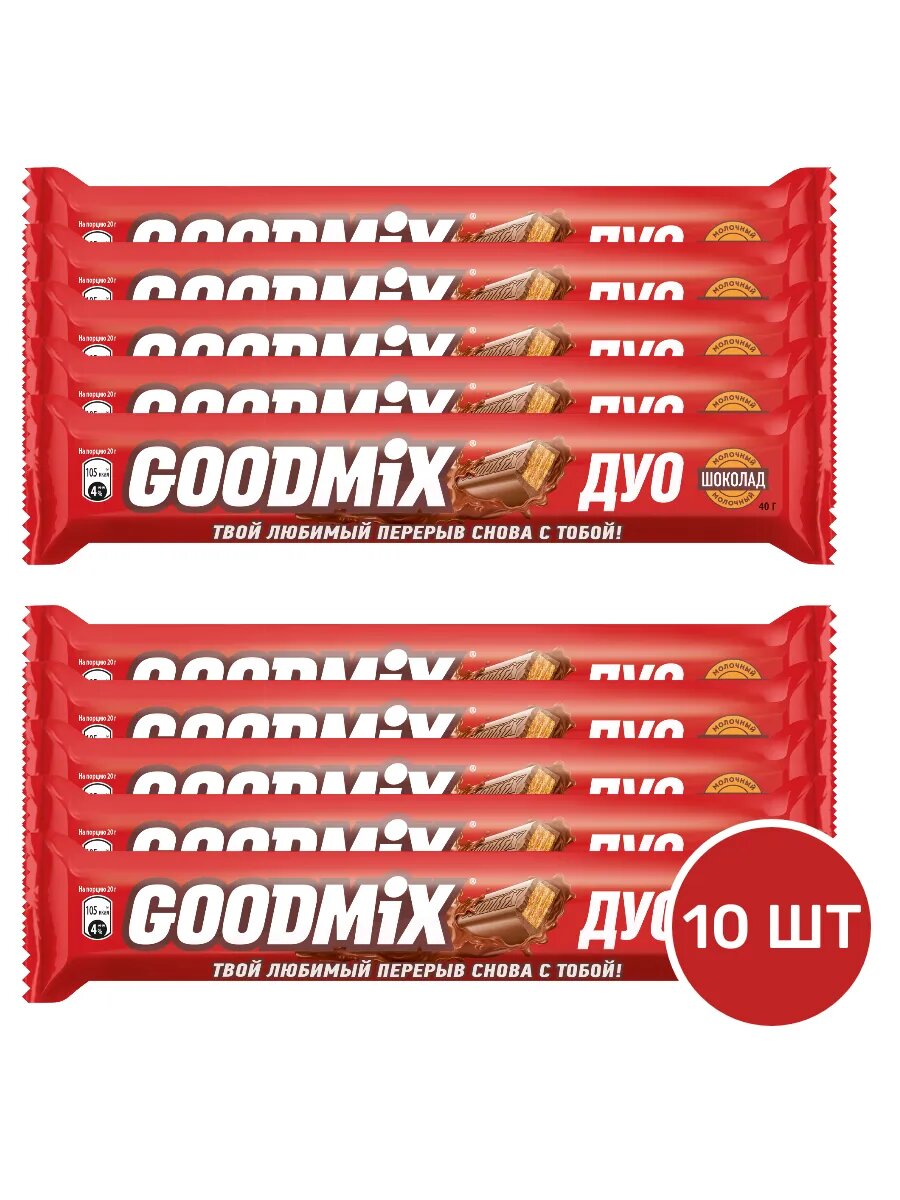 Шоколадный батончик, "GOODMIX ДУО", с хрустящей вафлей, 40г 10 шт интересное: