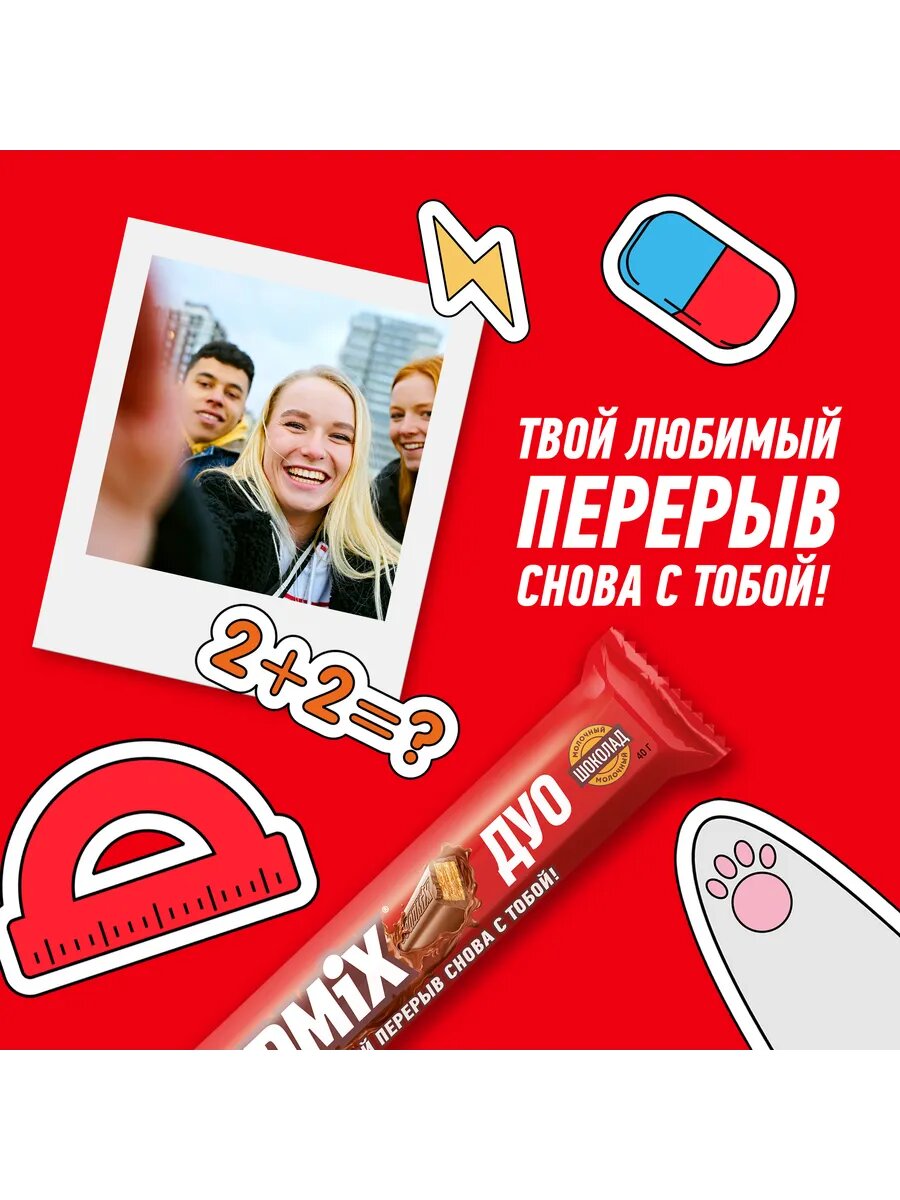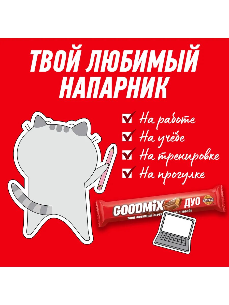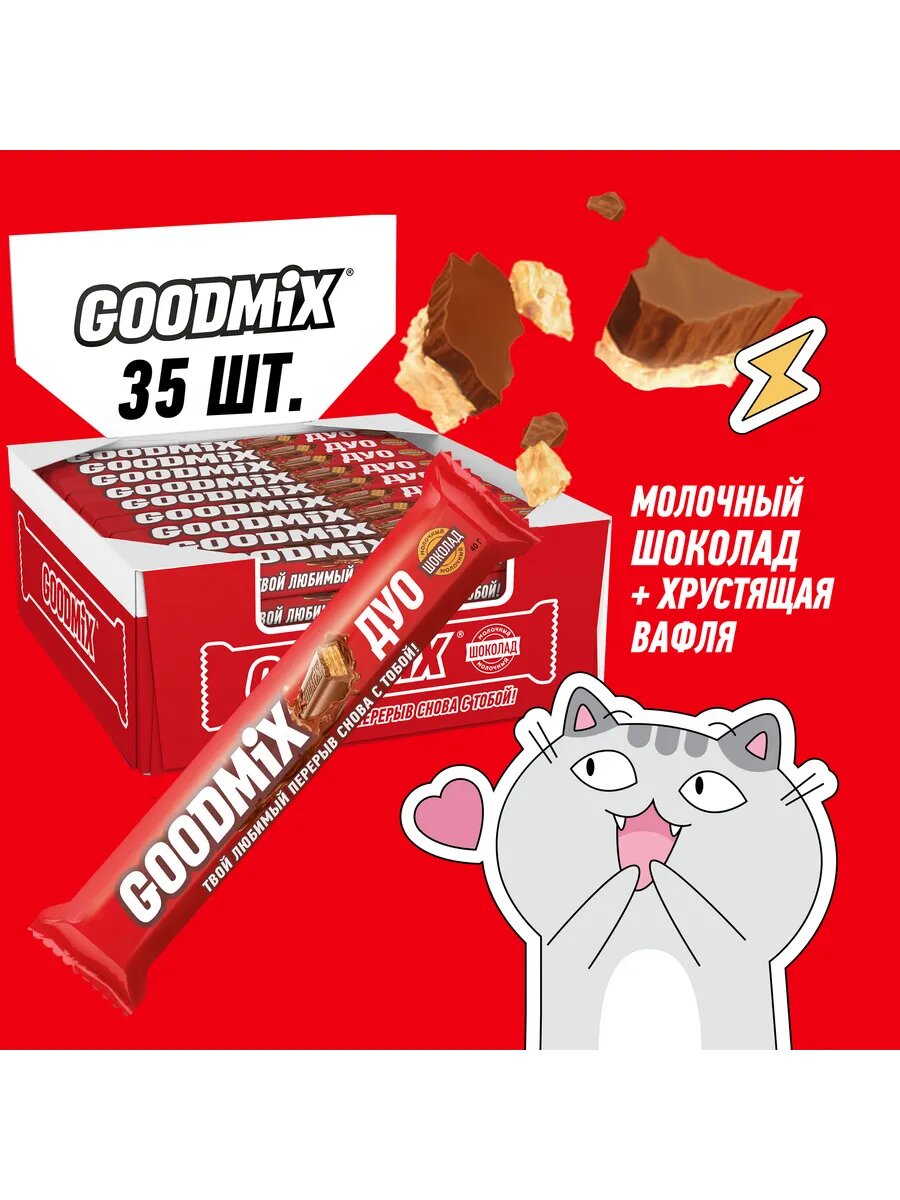 Шоколадный батончик, "GOODMIX ДУО", с хрустящей вафлей, 40г 35 шт интересное: