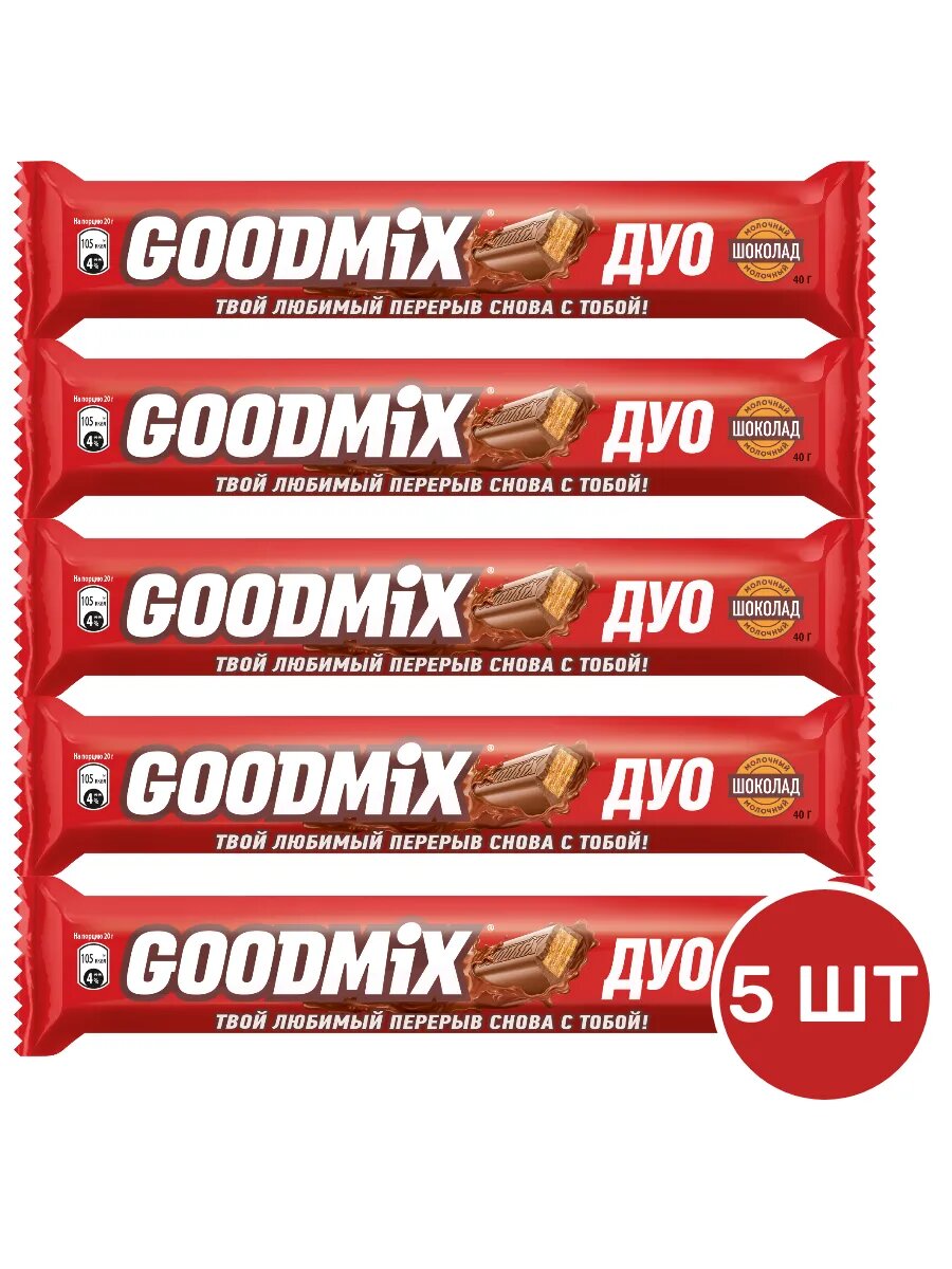 Шоколадный батончик, "GOODMIX ДУО", с хрустящей вафлей, 40г 5 шт интересное: