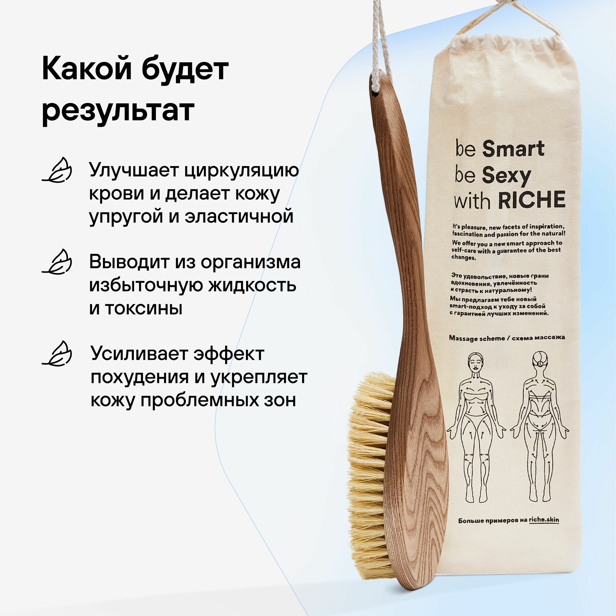 RICHE Щетка для сухого антицеллюлитного массажа тела Рише интересное: