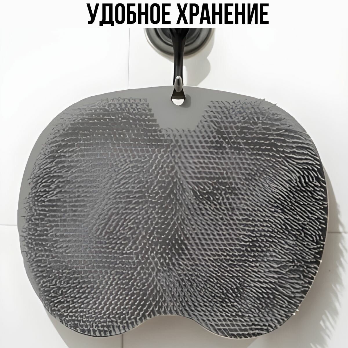 Силиконовая массажная мочалка коврик, серая, для мытья тела и ног на присосках для душа, ванны и сауны. Мочалка для спины. Антибактериальная щетка пилинг