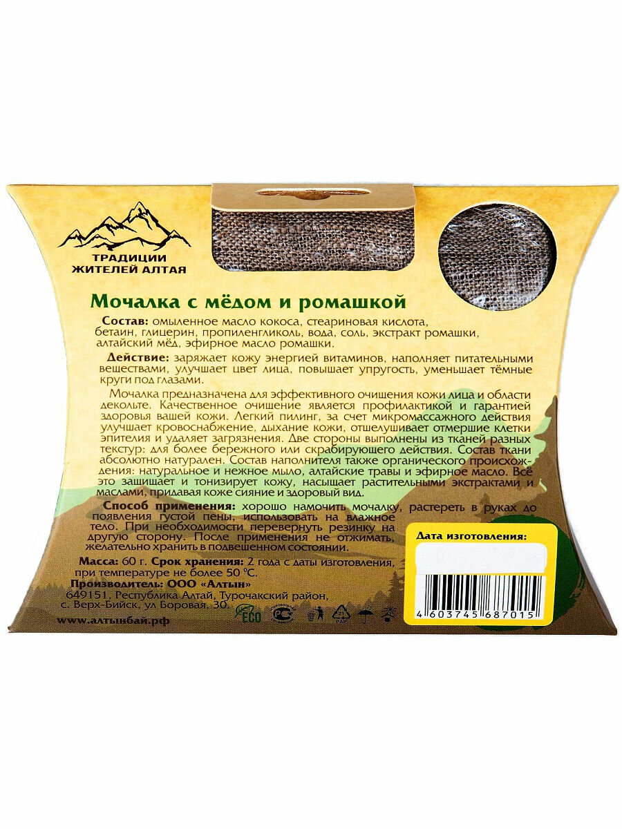 Алтын Бай Мочалка для умывания "Мёд и ромашка"