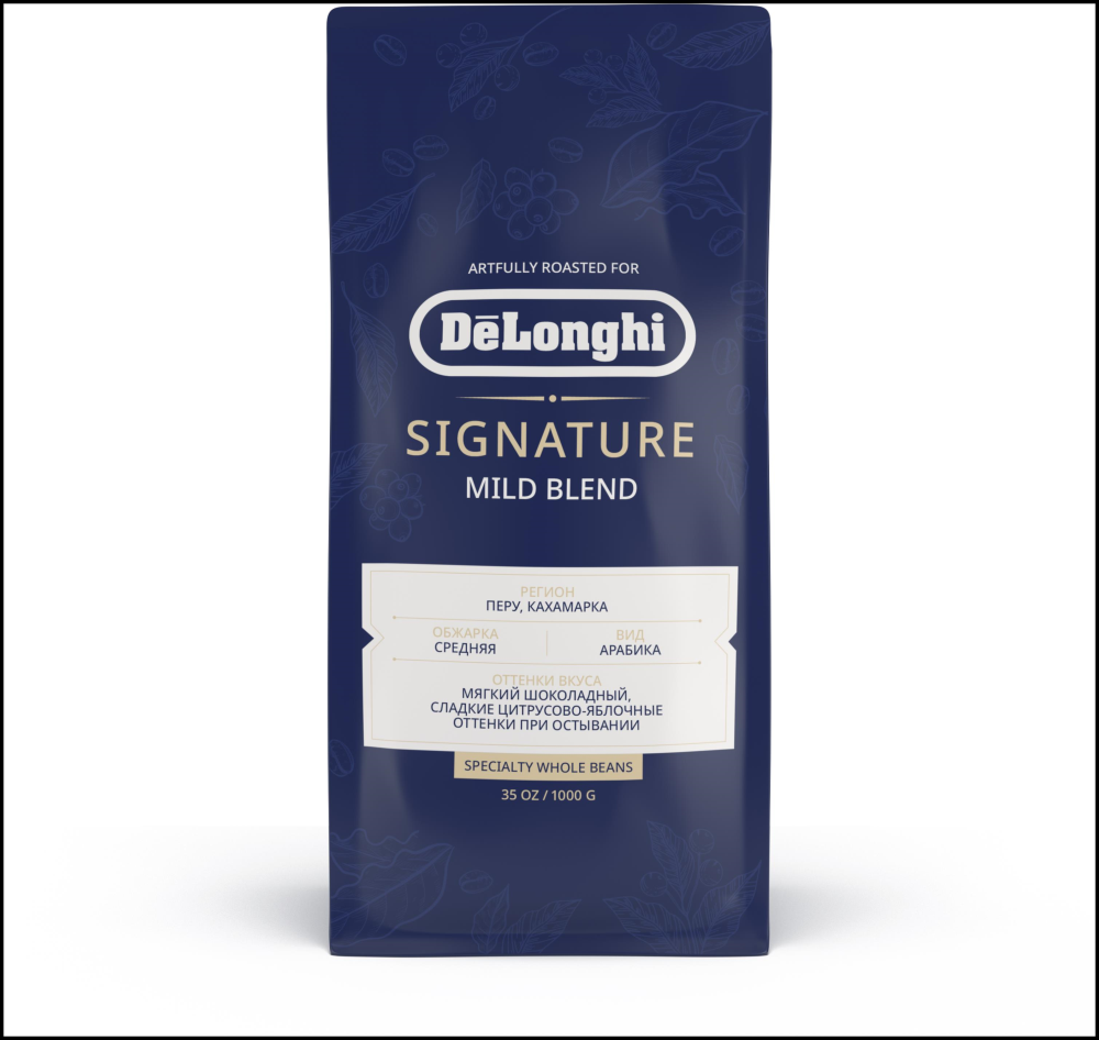 Кофе в зернах DeLonghi Signature coffee Mild Selection Blend, 1 кг, средняя обжарка, 100% Арабика