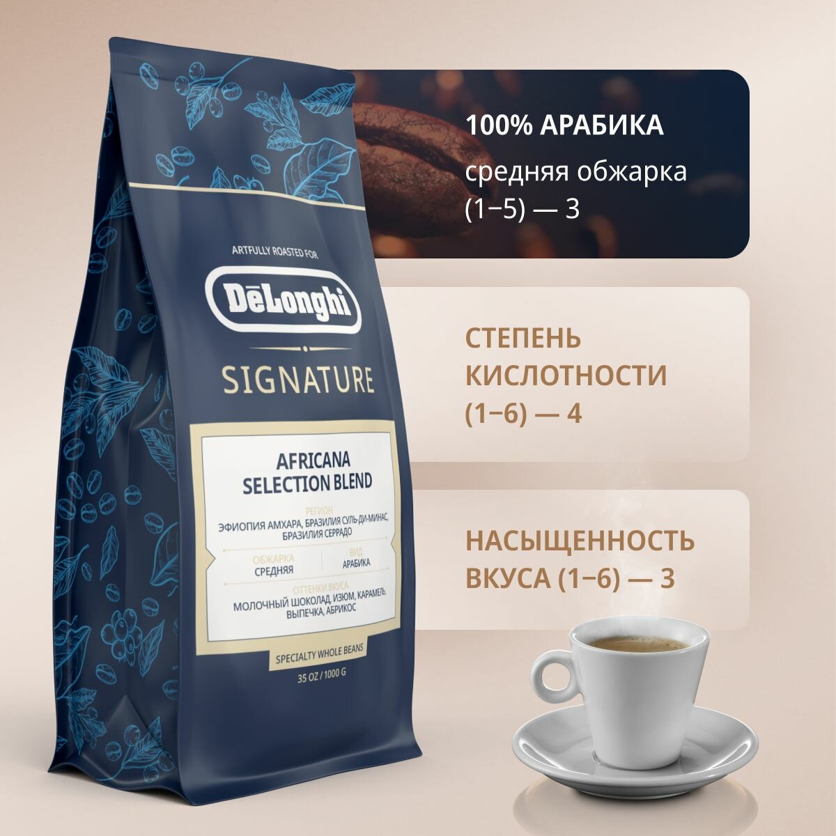 Купить Кофе в зернах DeLonghi Signature Africana Selection Blend, 1кг