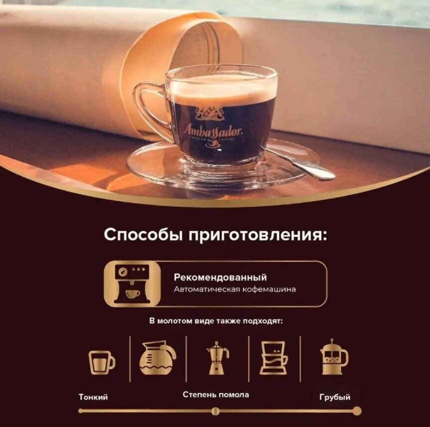 Кофе Ambassador Gold Label в зернах - 1кг, Арабика пр-во 09.24 интересное:
