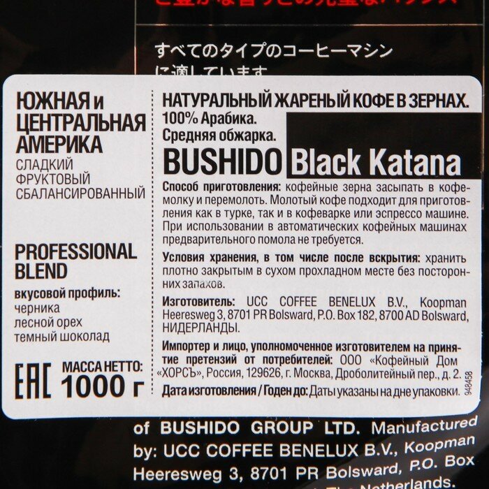 Купить Кофе в зернах BUSHIDO Black Katana 1 кг
