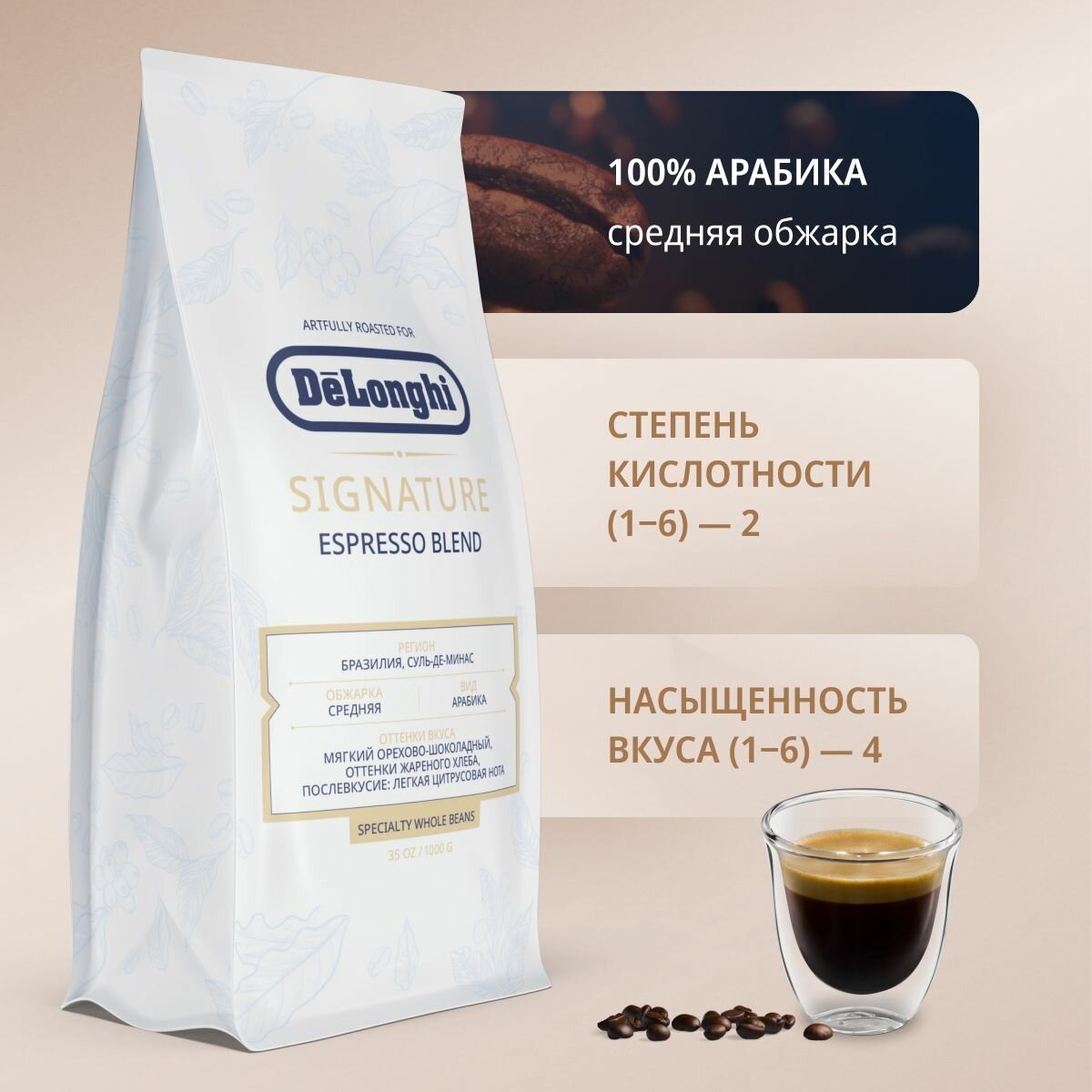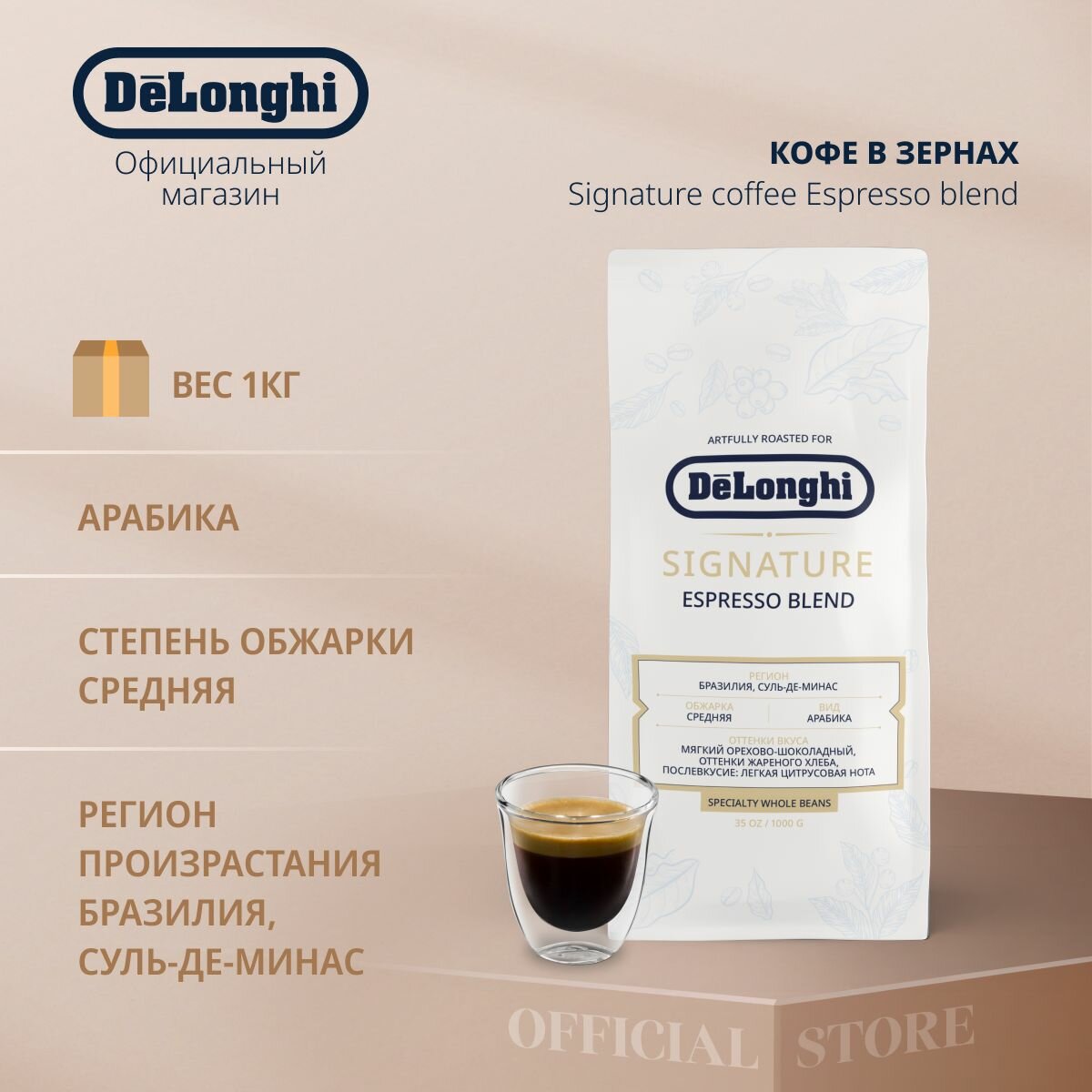 Кофе в зернах DeLonghi Signature coffee Espresso Blend, 1 кг, средняя обжарка, 100% Арабика