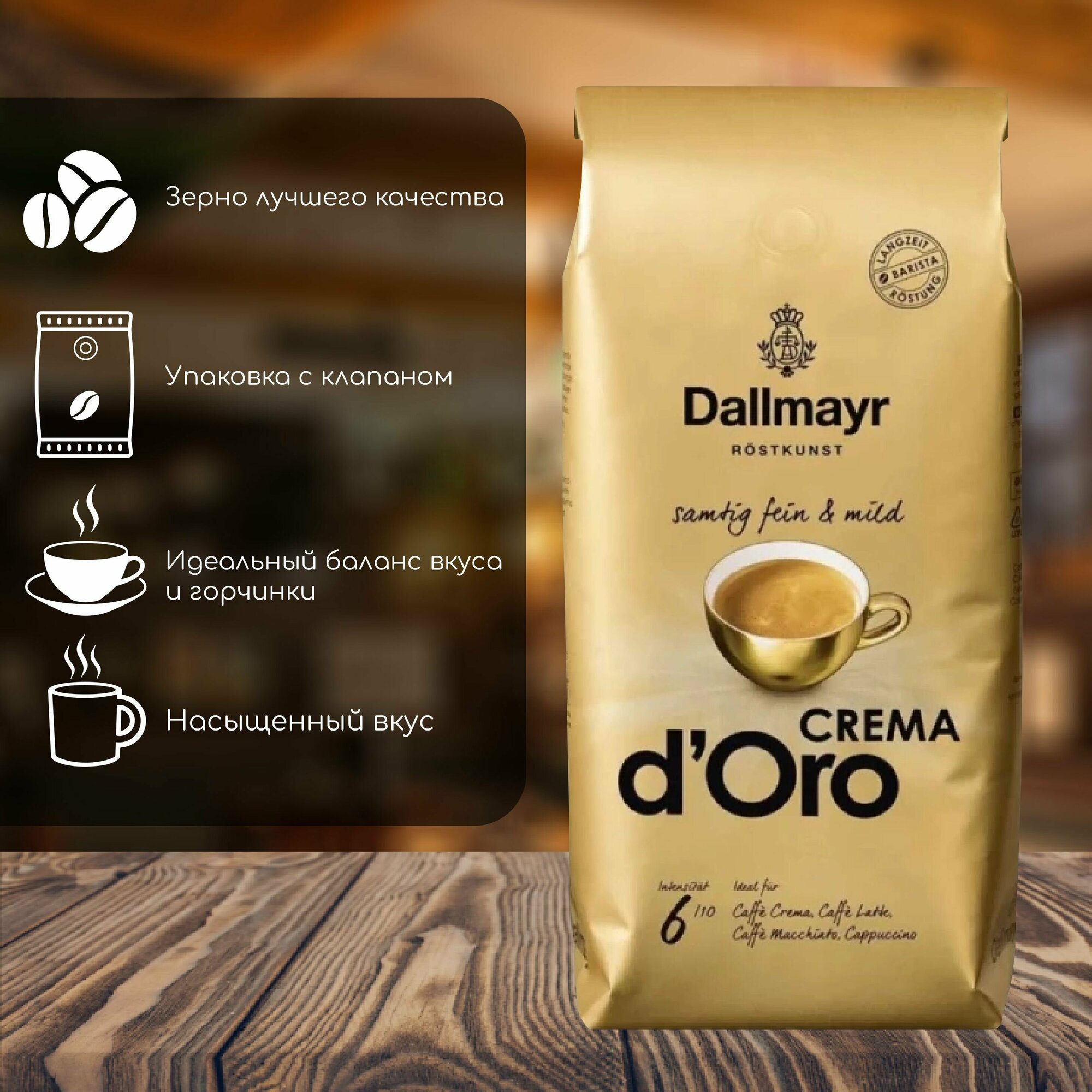 Кофе в зернах Dallmayr Crema d'Oro 1 кг, 100% Арабика, средняя обжарка