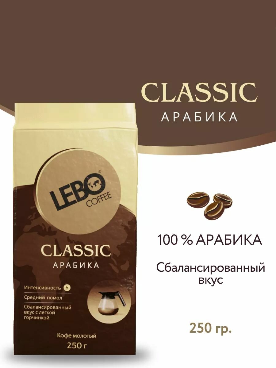 Кофе молотый Lebo Classic Арабика 100% , Приготовление - универсально 250 г