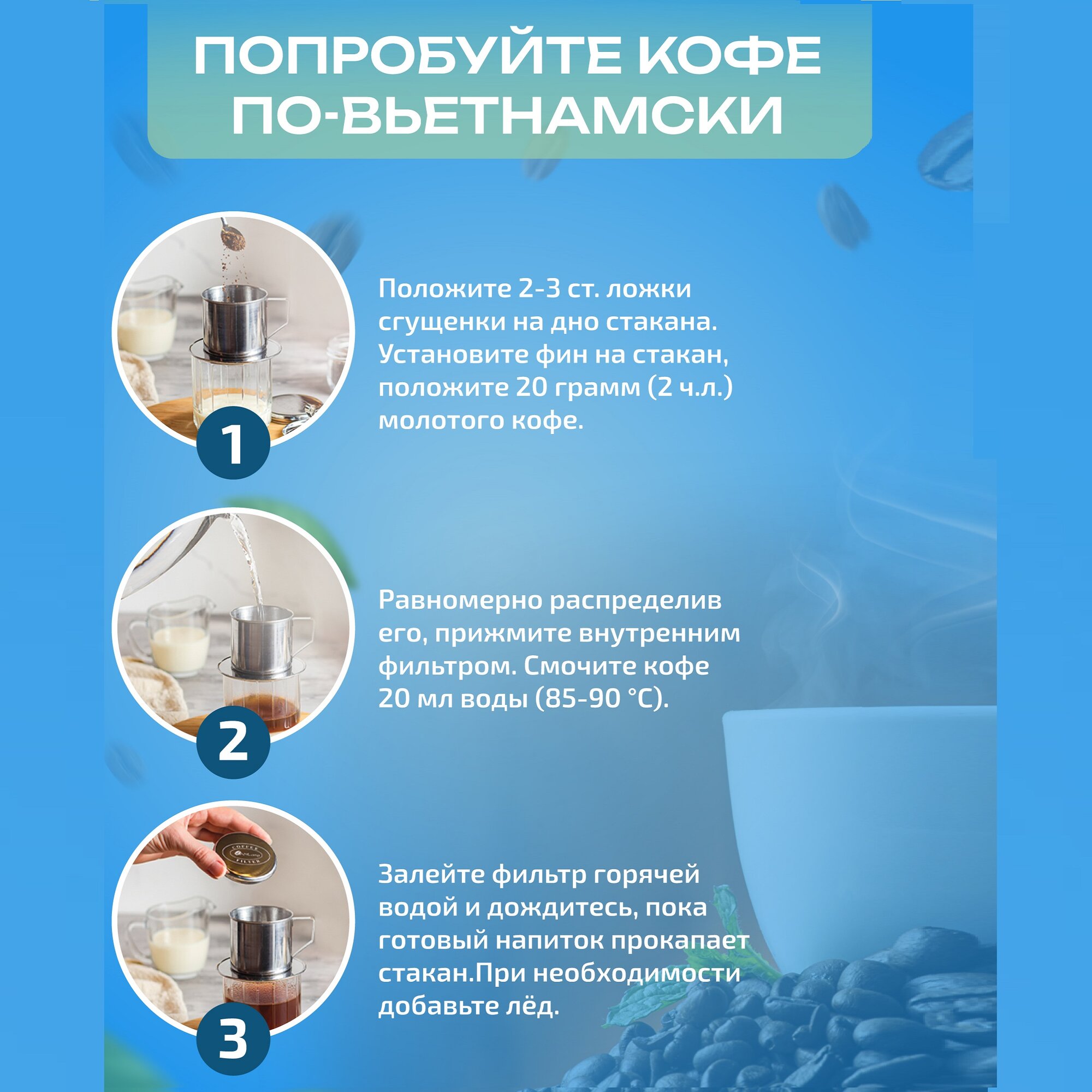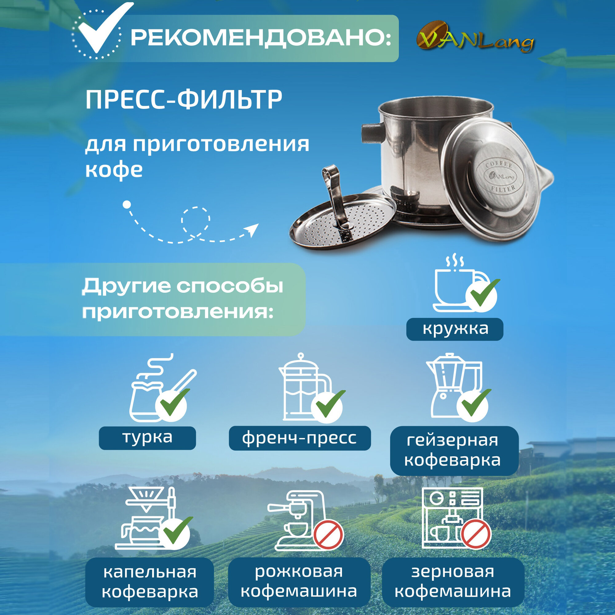 | Способ заваривания | аэропресс, гейзерная кофеварка (мока), френч-пресс, чашка |