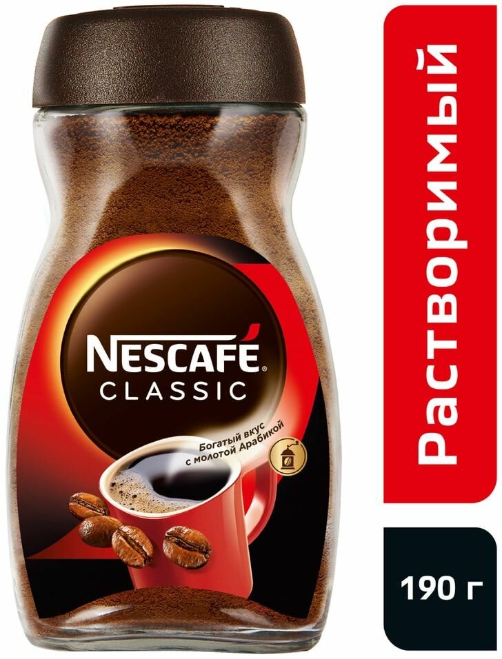 Растворимый кофе NESCAFÉ Classic с добавлением натурального жареного молотого кофе, банка 190 г