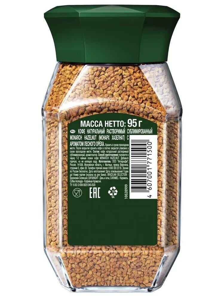 Кофе растворимый Monarch Hazelnut, стеклянная банка, 95 г