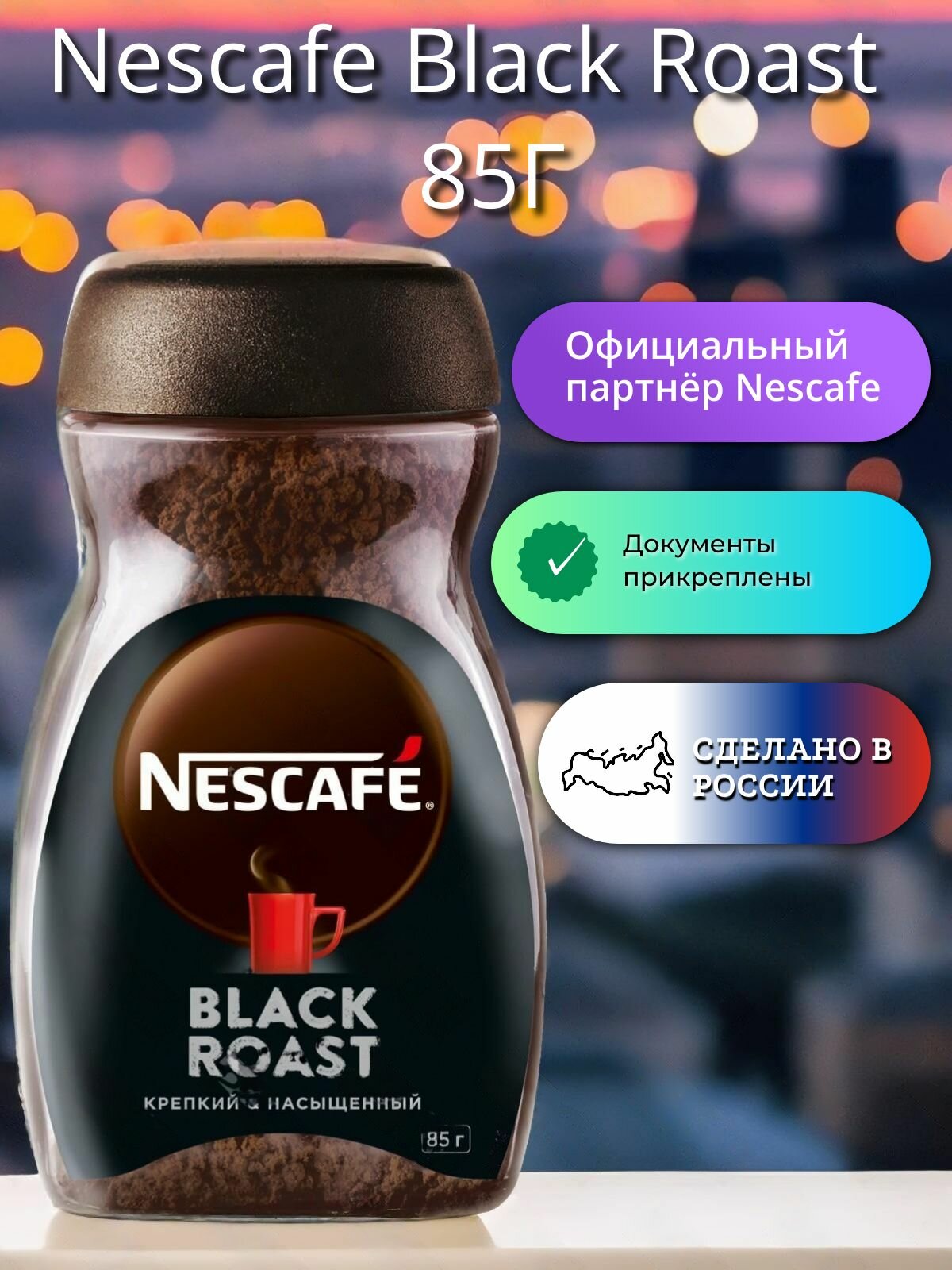 Кофе Nescafe, Black Roast растворимый, гранулированный, стеклянная банка, 85 г