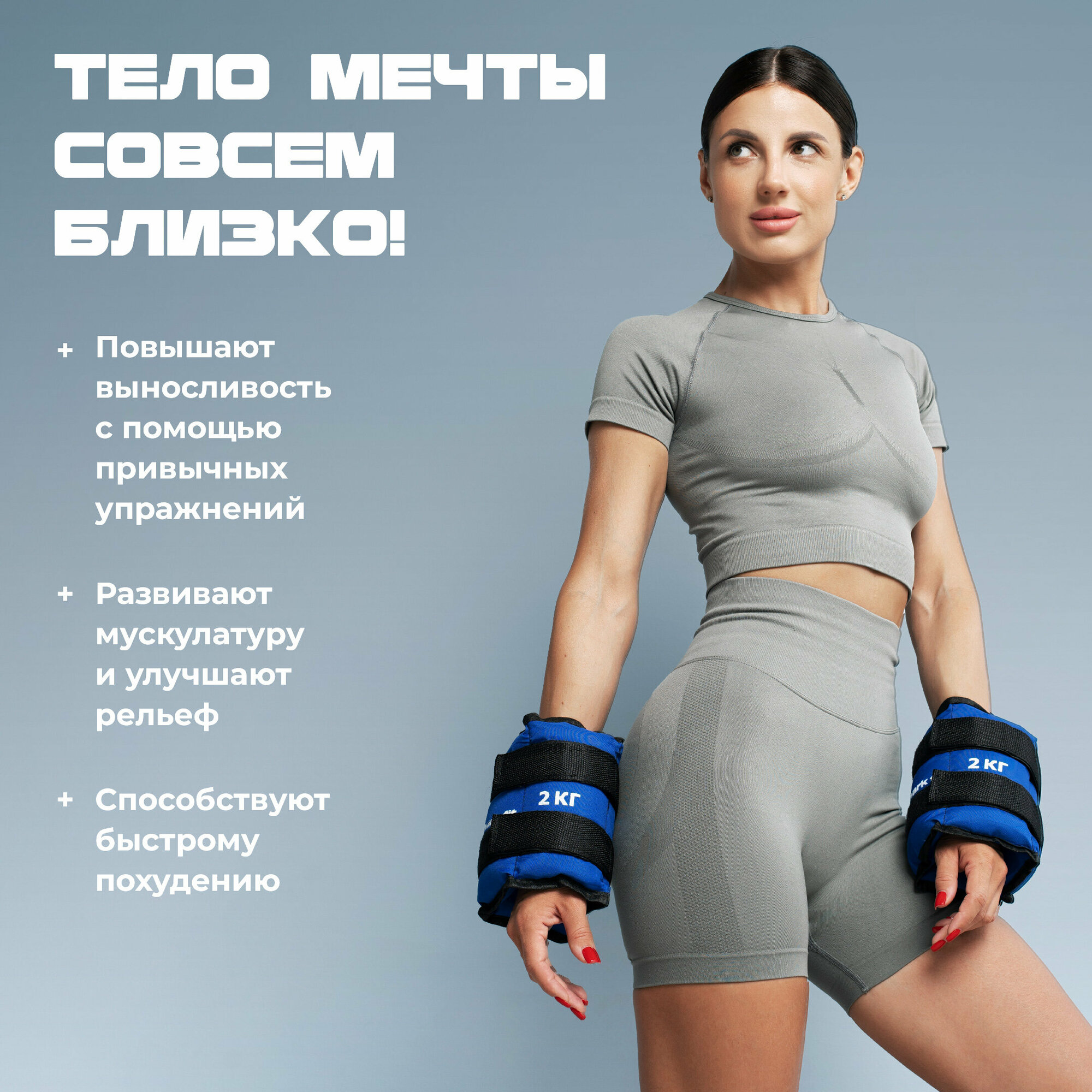 Утяжелители для ног и рук спортивные, Shark Fit, Грузы для фитнеса и спорта/ 2 шт, 2 кг. Синий интересное: