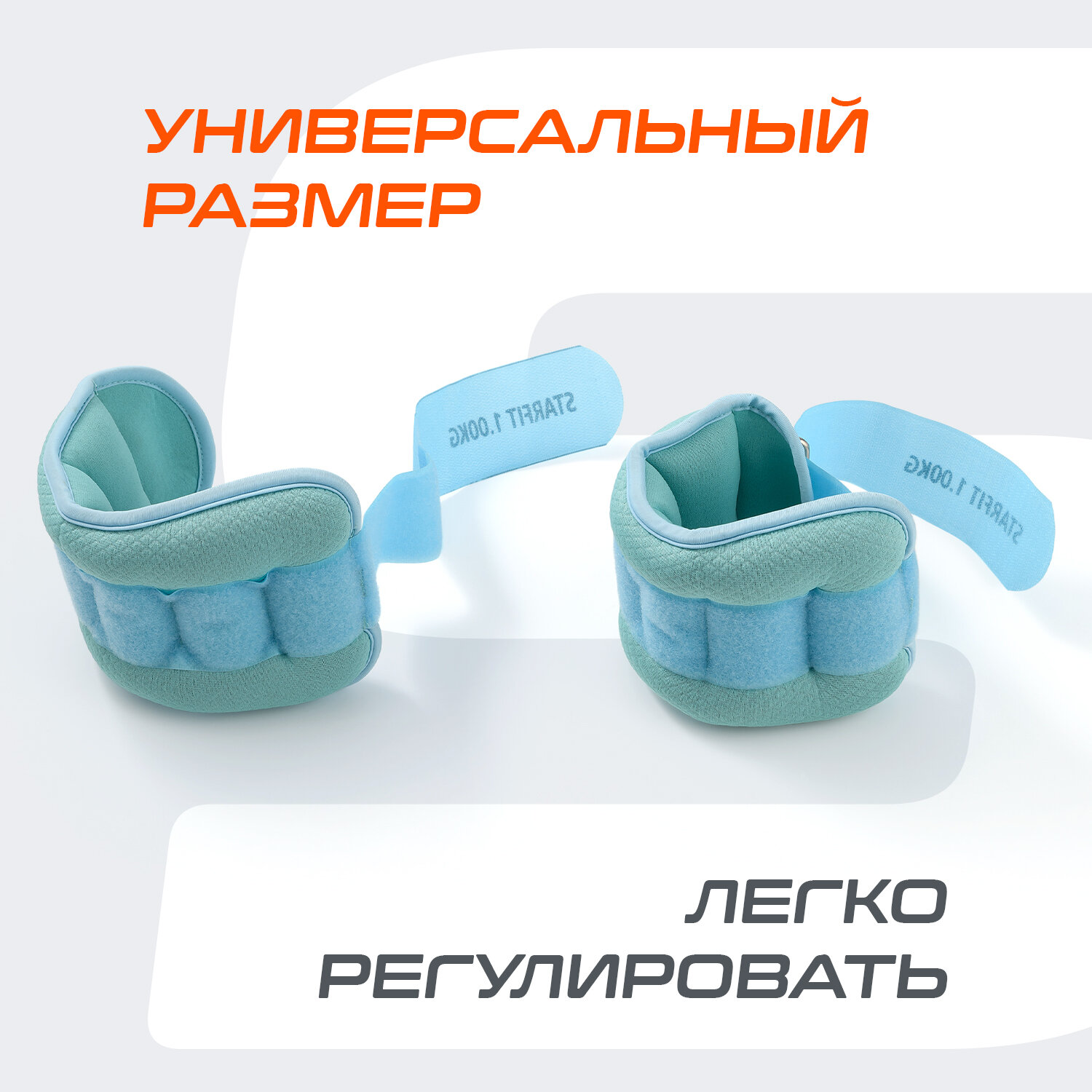 Купить Утяжелители для ног STARFIT WT-503 универсальные 2 шт 1 кг, цвет мятный/синий пастель