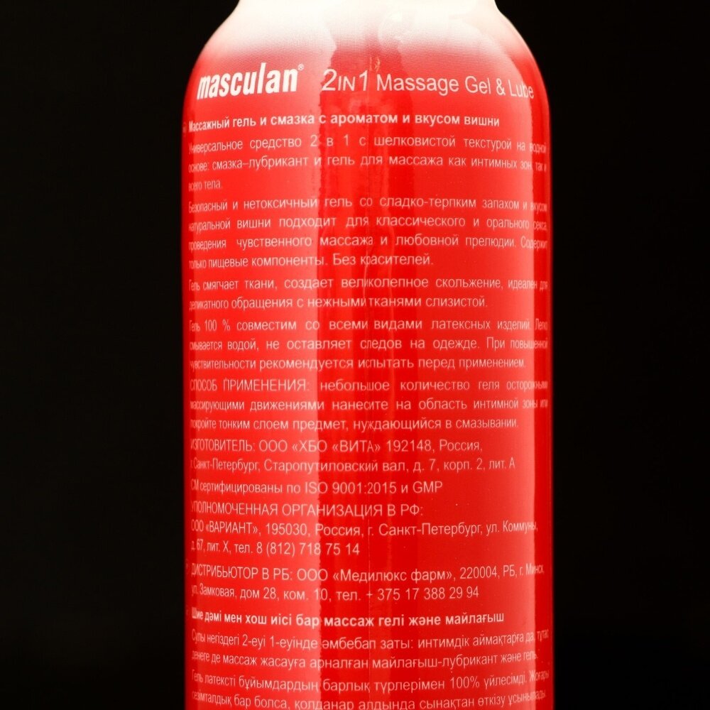 Маскулан гель массажный и смазка masculan с ароматом вишни 2 в 1 фл.130мл с дозатором