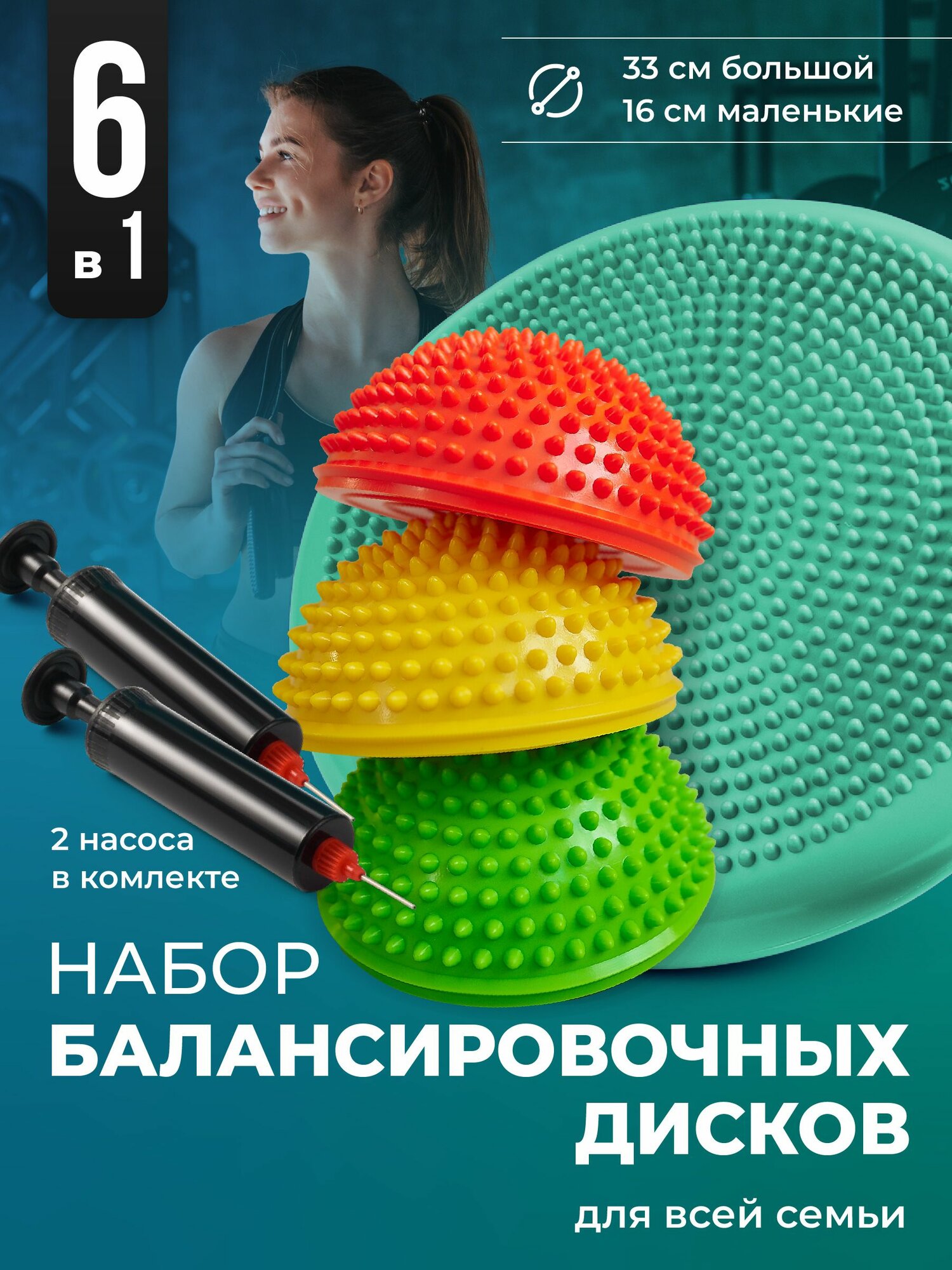 | Дополнительная информация | подробная комплектация: 3 балансировочные подушки; 1 насос; вид опоры: полусфера; форма доски: круглая; количество в комплекте: 3 |