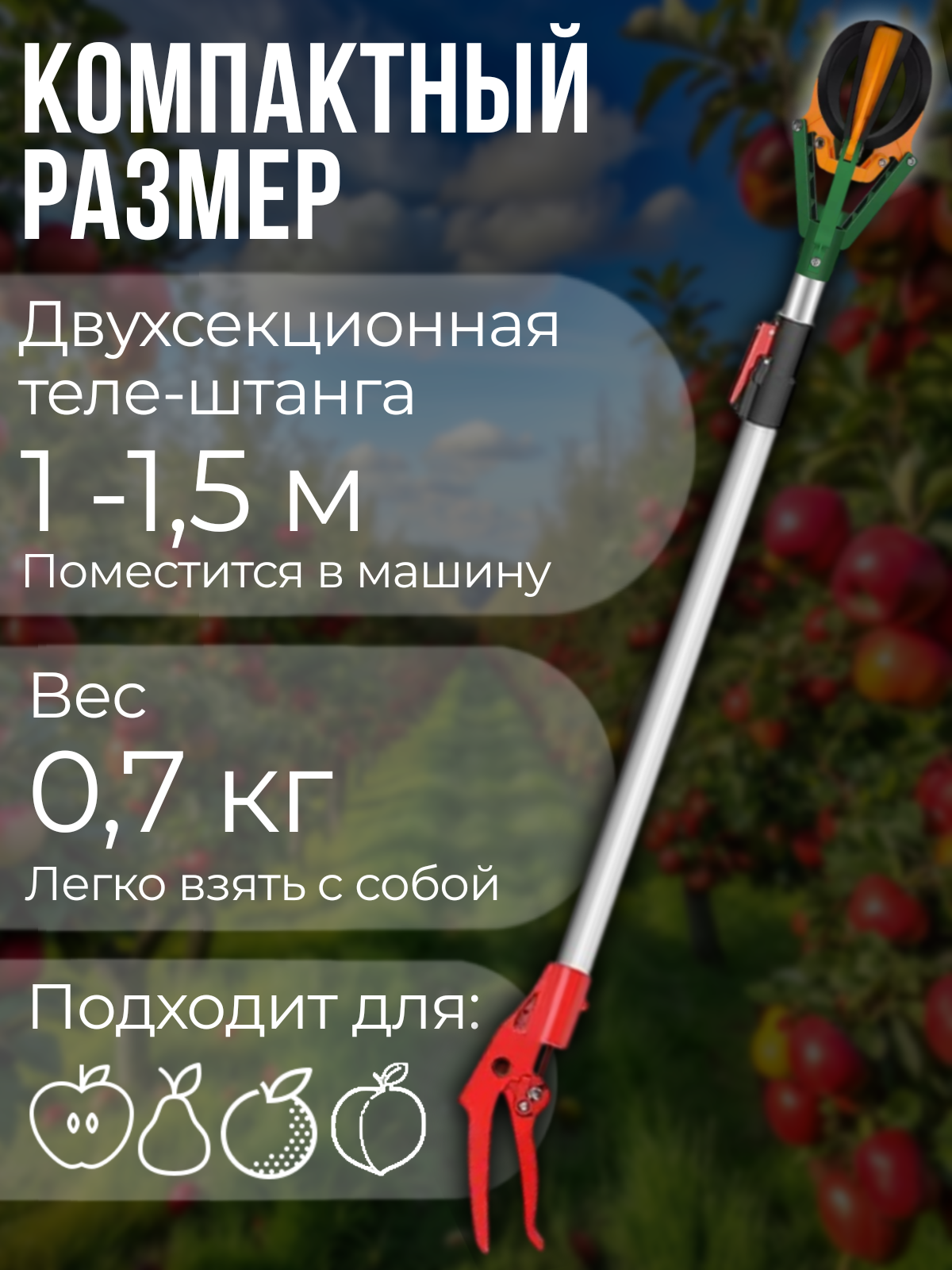 Плодосъемник PALISAD 1370-2060 мм, LUXE с захватом, алюминиевая телескопическая штанга интересное: