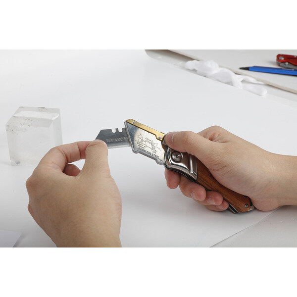 Складной нож WORKPRO ручка из дерева, 10 лезвий, трапециевидные лезвия WP211014