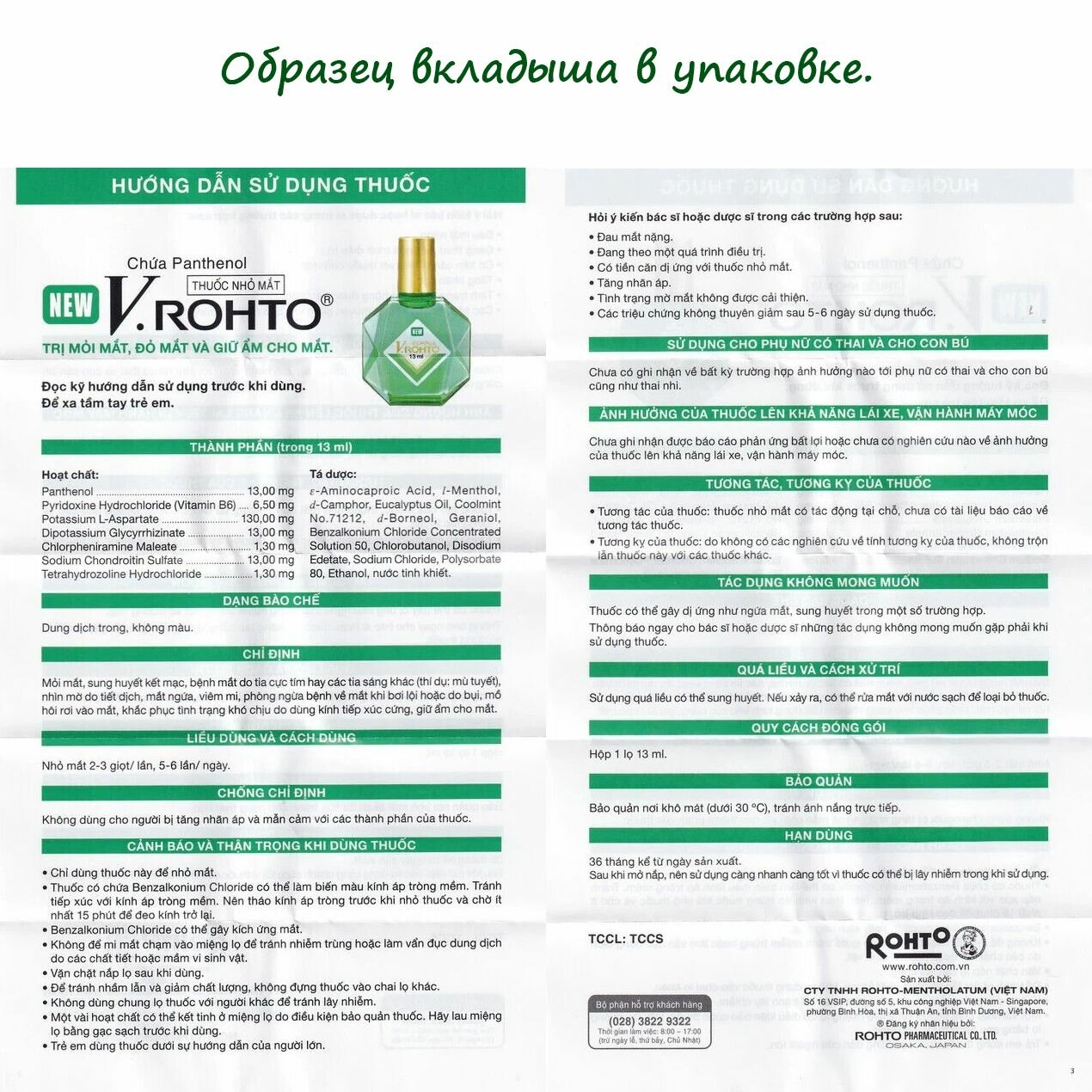 Капли для глаз Увлажняющие V.ROHTO NEW THUOC NHO MAT с витамином В6, 13 мл, Вьетнам интересное: