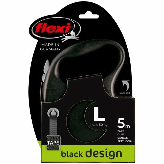 Flexi Black Design Рулетка для собак весом до 50 кг длинна 5м с ремнём
