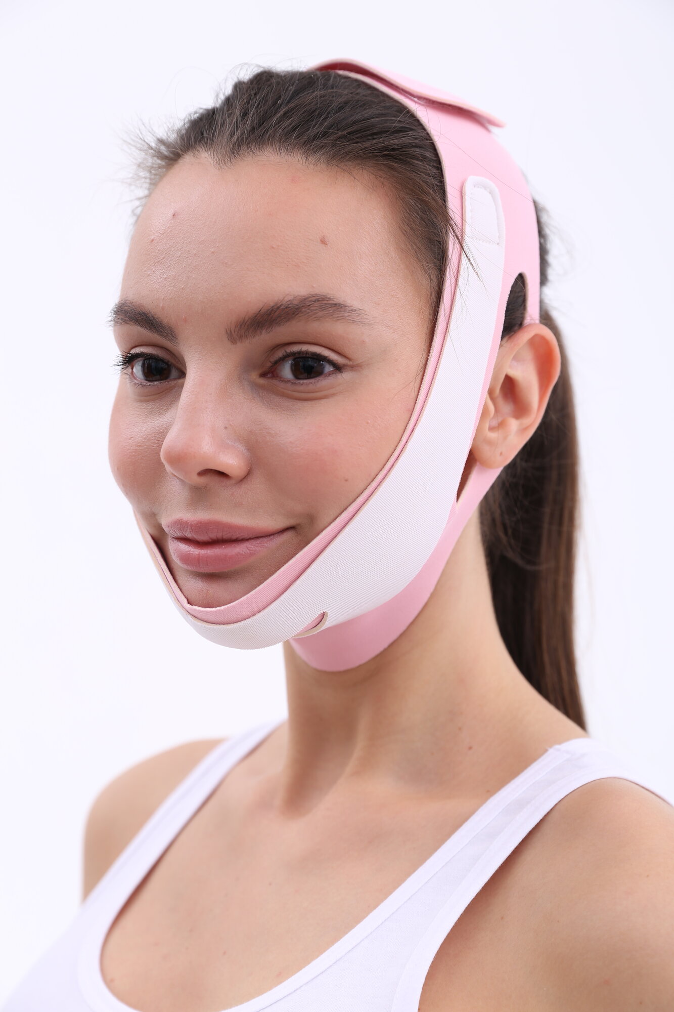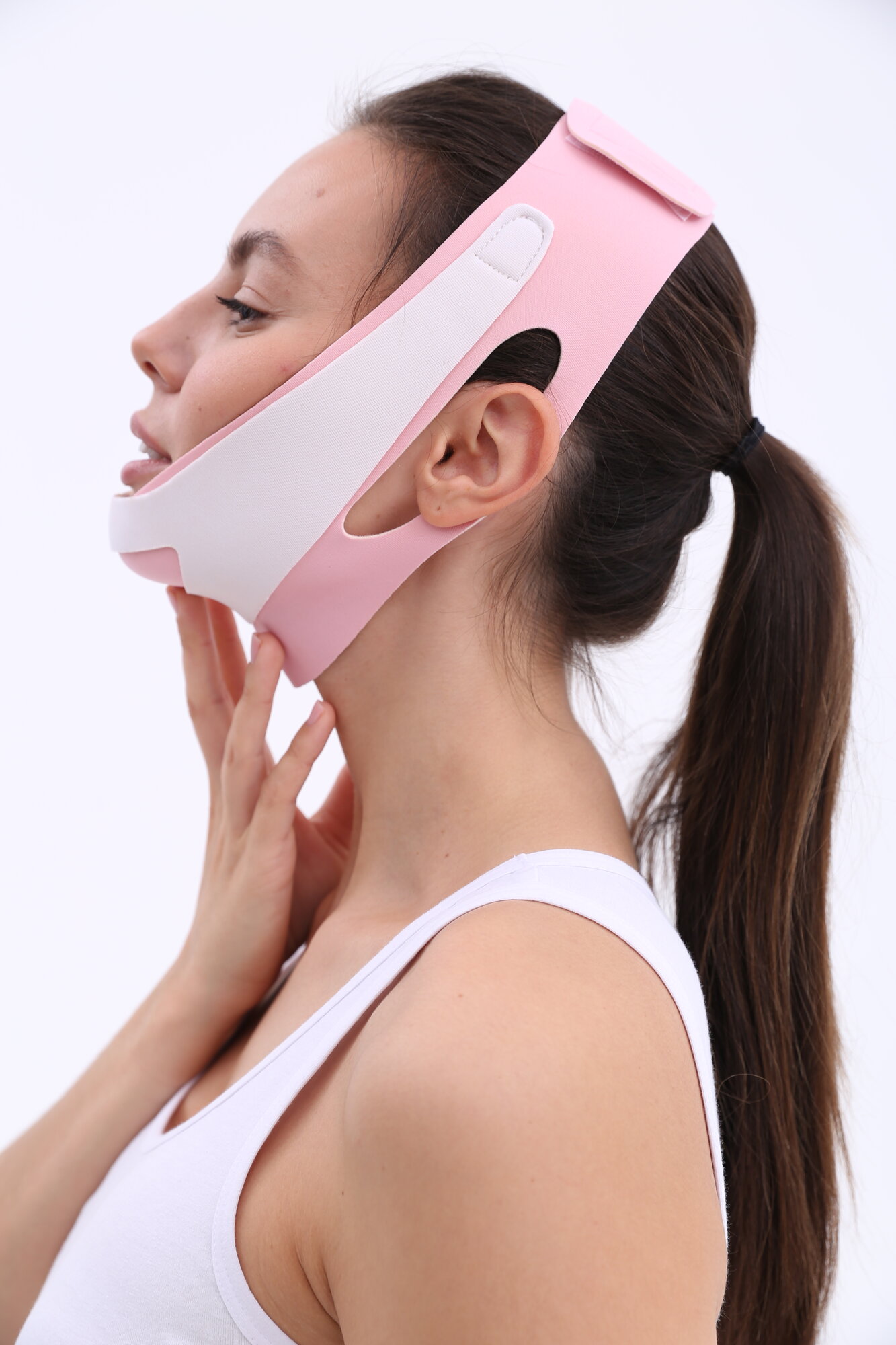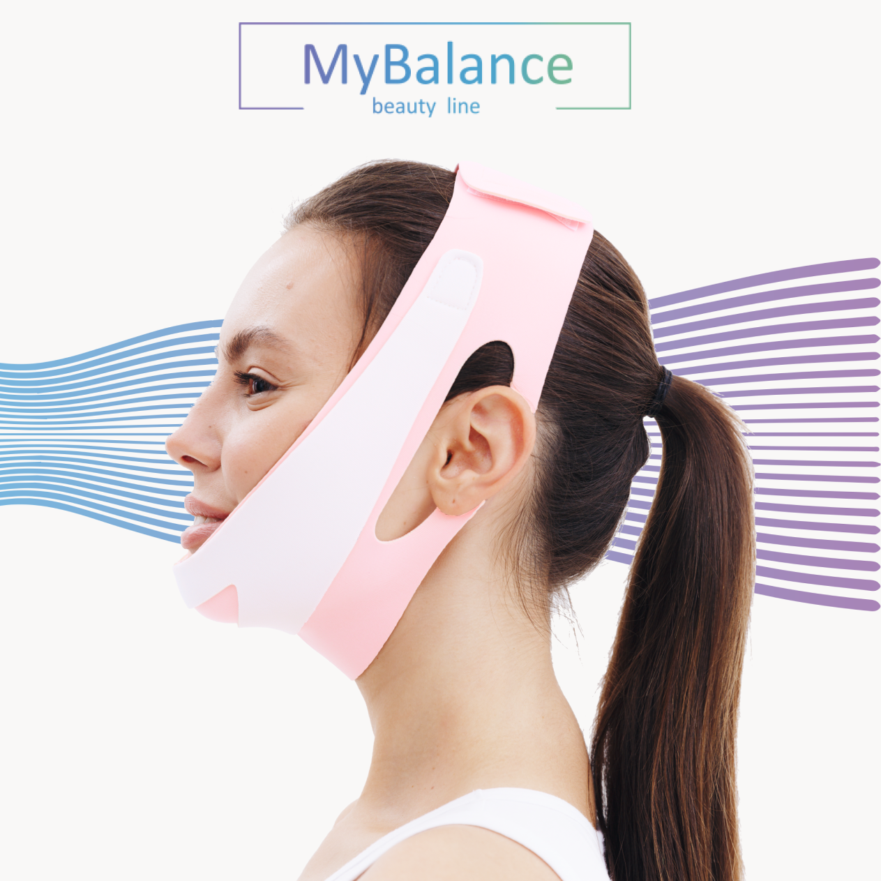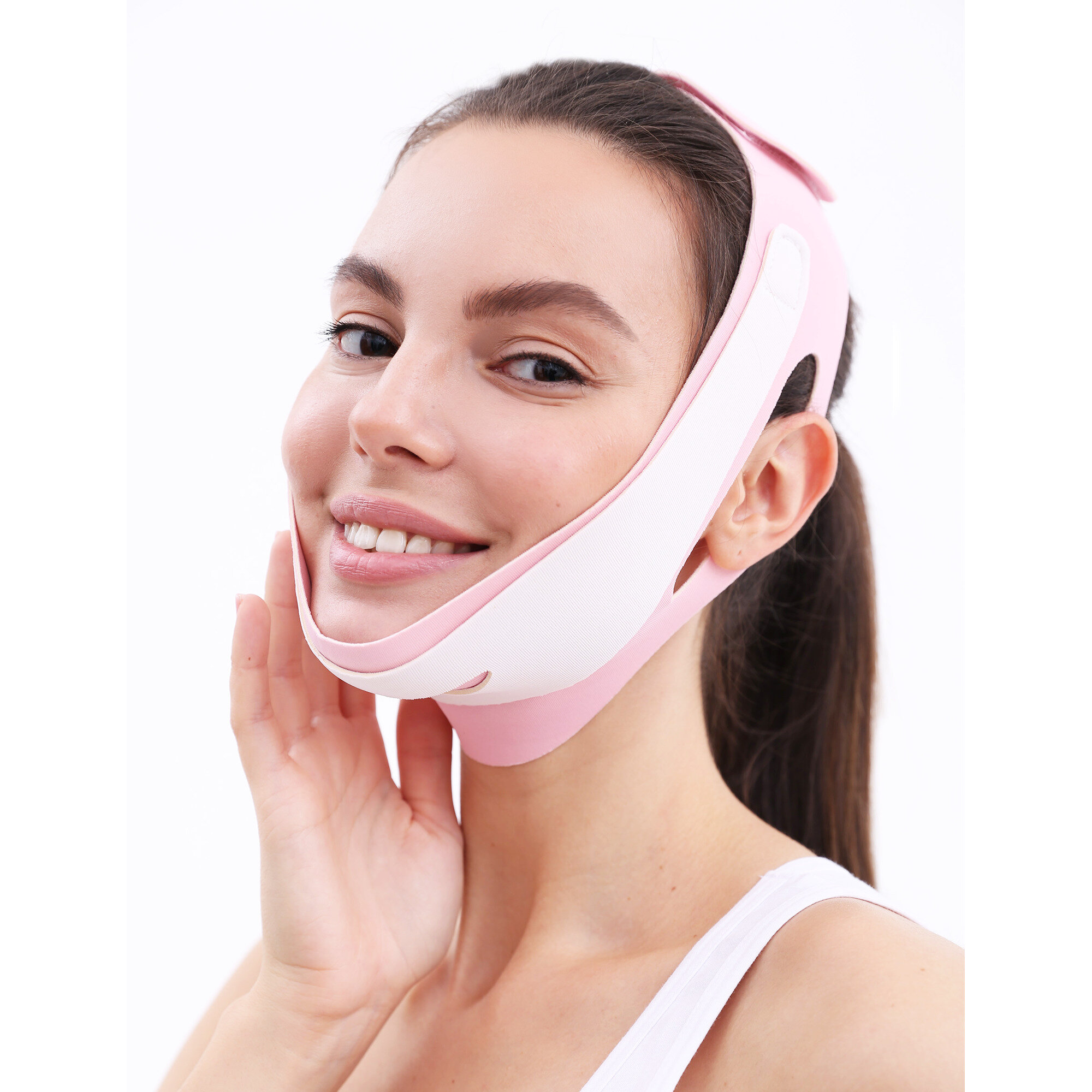 Лифтинг маска My Balance для подбородка, маска бандаж многоразовая для коррекции овала лица, косметическая тейп маска, white/pink