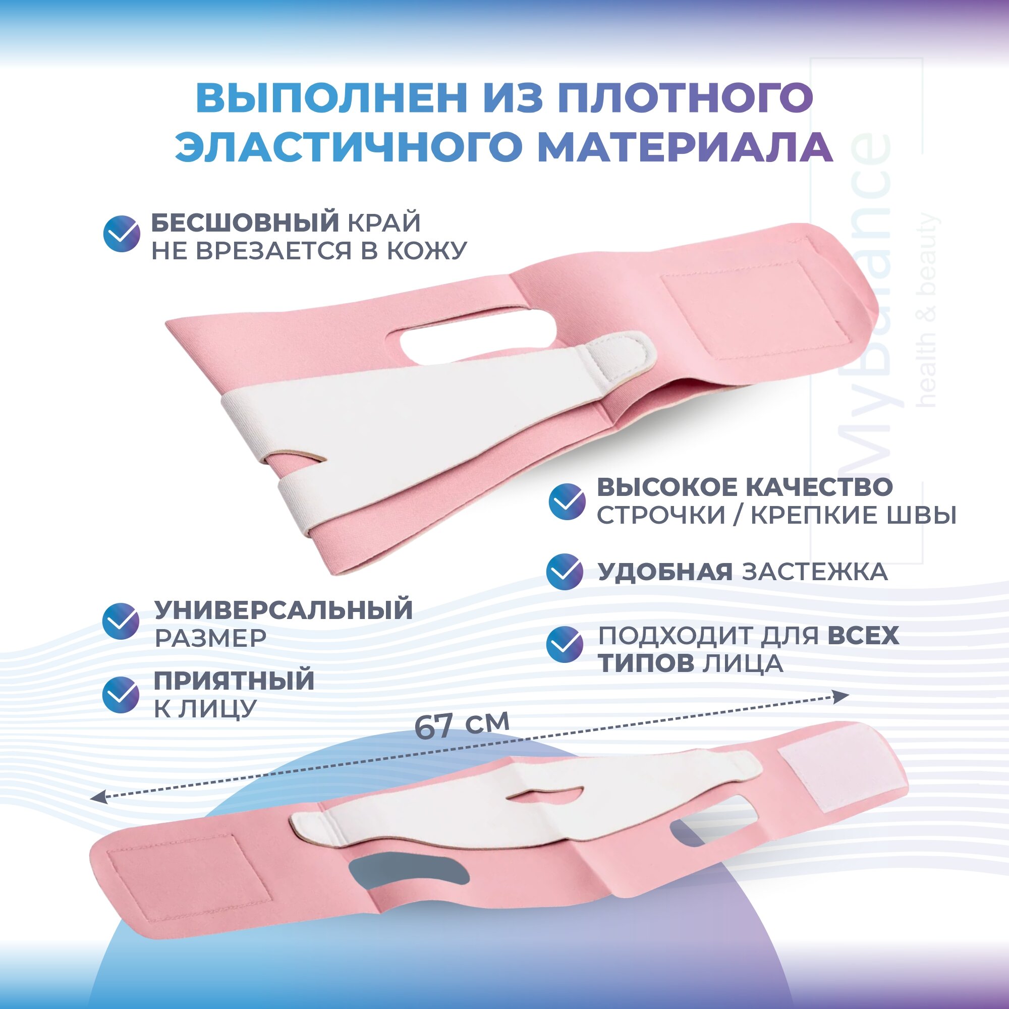 Купить Маска бандаж для коррекции овала лица MyBalance, светло - розовый, 67 см
