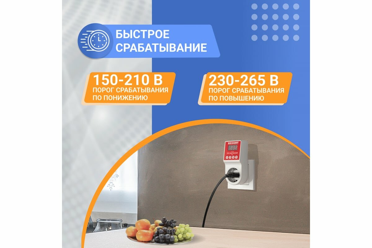 Реле напряжения Rexant 10-6040 «вилка-розетка» c дисплеем 16А интересное: