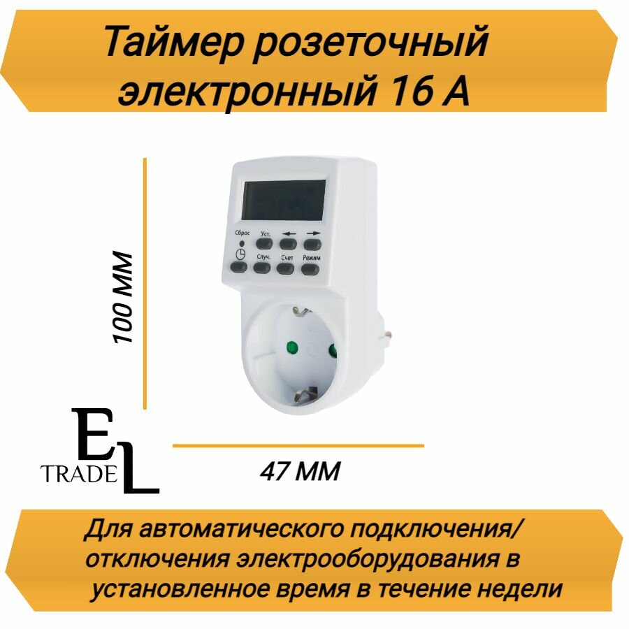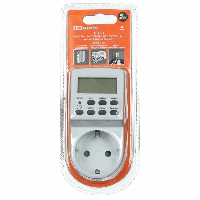 Таймер розеточный электронный ТРЭ-01-1мин/7дн-20on/off-16А (недельный) TDM SQ1506-0002 (1 шт.) интересное:
