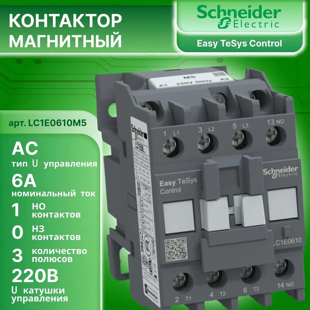 LC1E0610M5 Контактор 3Р, 6А, 1НО, АС3, 220V, 50Гц