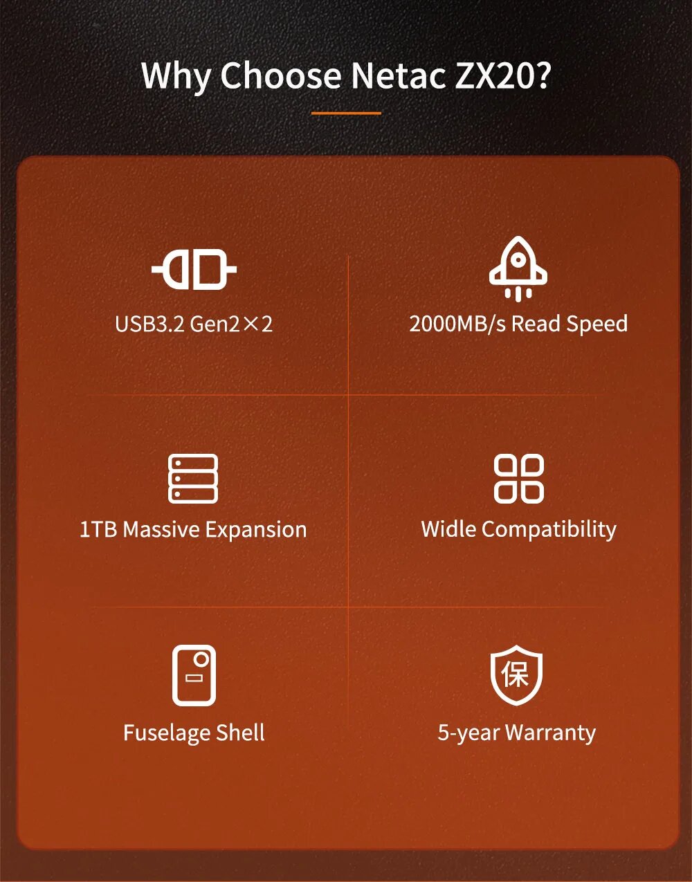 Купить Внешний SSD-накопитель Netac 2000 Мб/с, 1 ТБ, 512 ГБ, ZX20, 1 ТБ