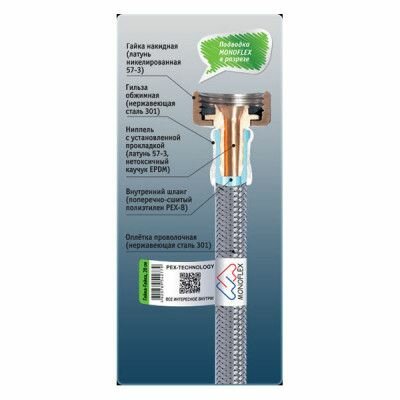 Гибкая подводка для воды 1/2" 80см, гайка-гайка MONOFLEX Pex-Technology 12мм, длина 0,8м/0.8м, 1шт/уп