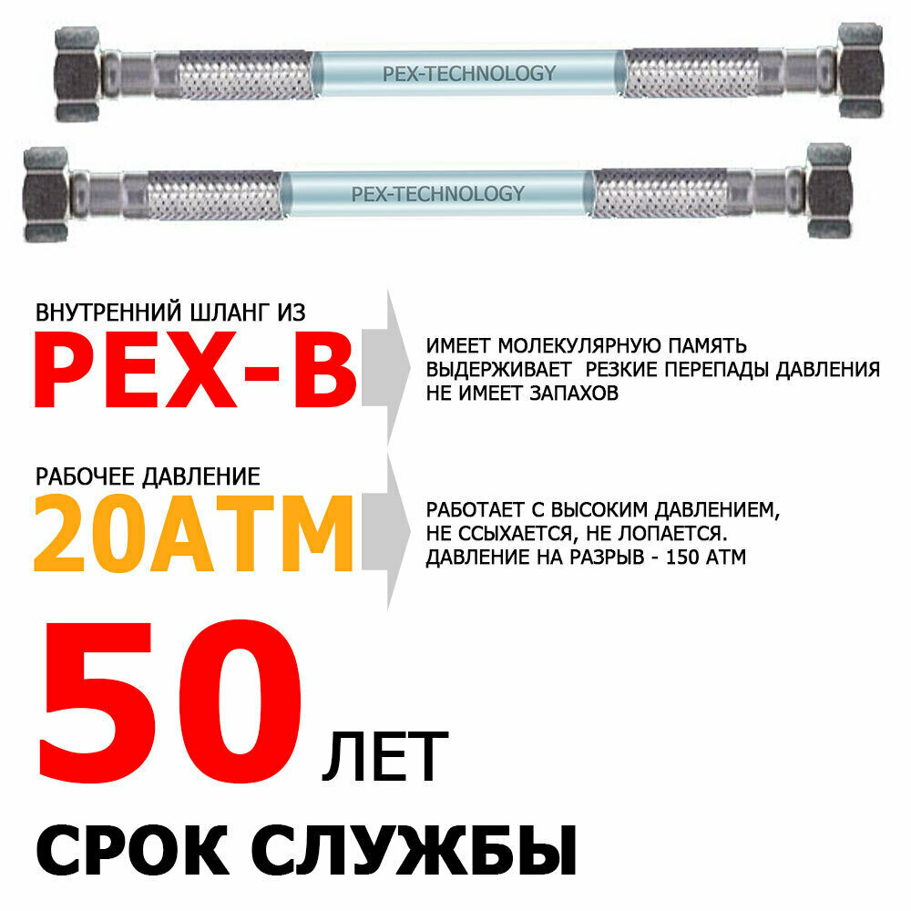 Гибкая подводка для воды 1/2" 50см, гайка-гайка MONOFLEX Pex-Technology 12мм, длина 0,5м/0.5м , 1шт/уп