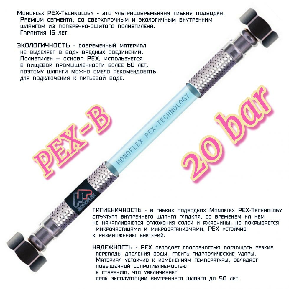 Гибкая подводка для воды 1/2" 100см, гайка-гайка MONOFLEX Pex-Technology 12мм, длина 1м, 1шт/уп