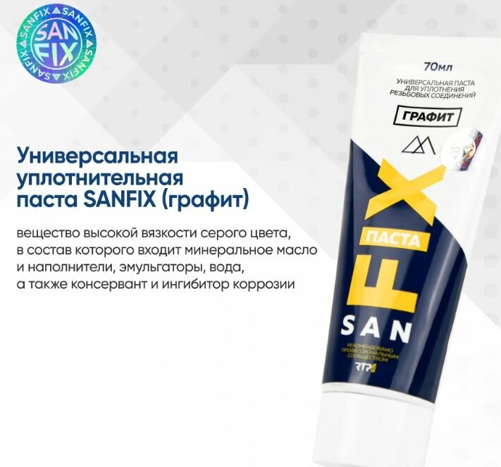 Паста универсальная, 70 мл, для уплотнения резьбовых соединеняя, графит, Sanfix, туба, 40715
