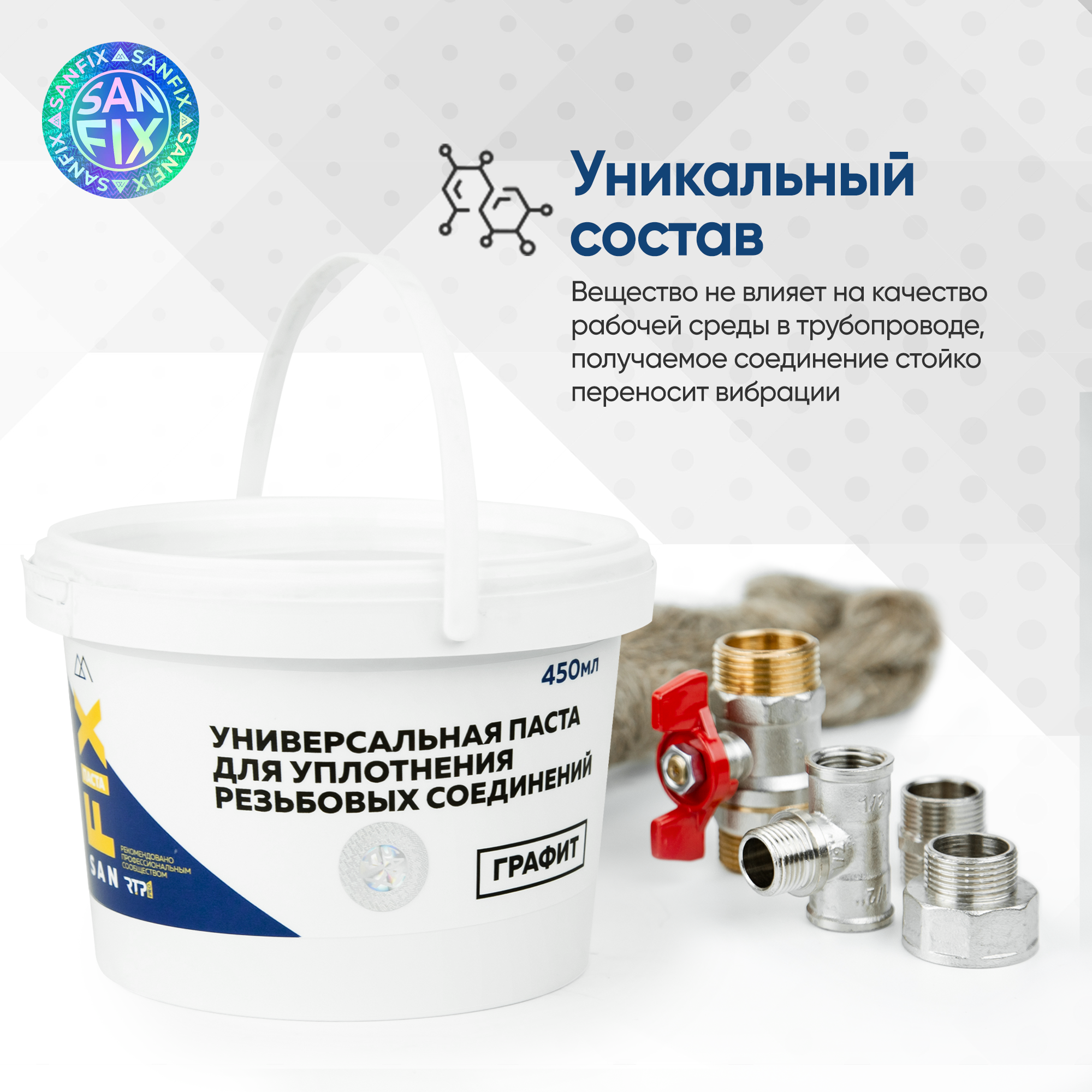 СохранитьПаста универсальная для уплотнения резьбовых соединений 450 мл., ведро, графит, SANFIX интересное: