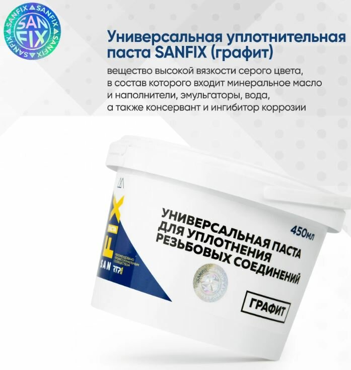 Паста универсальная, 450 мл, для уплотнения резьбовых соединеняя, графит, Sanfix, ведро, 41675
