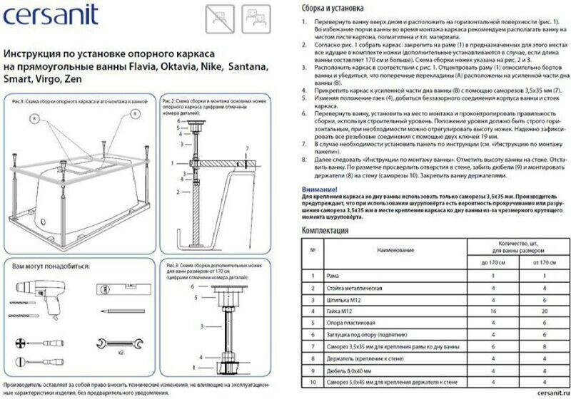 Каркас для ванны акриловой Cersanit Virgo 170 см с монтажным набором