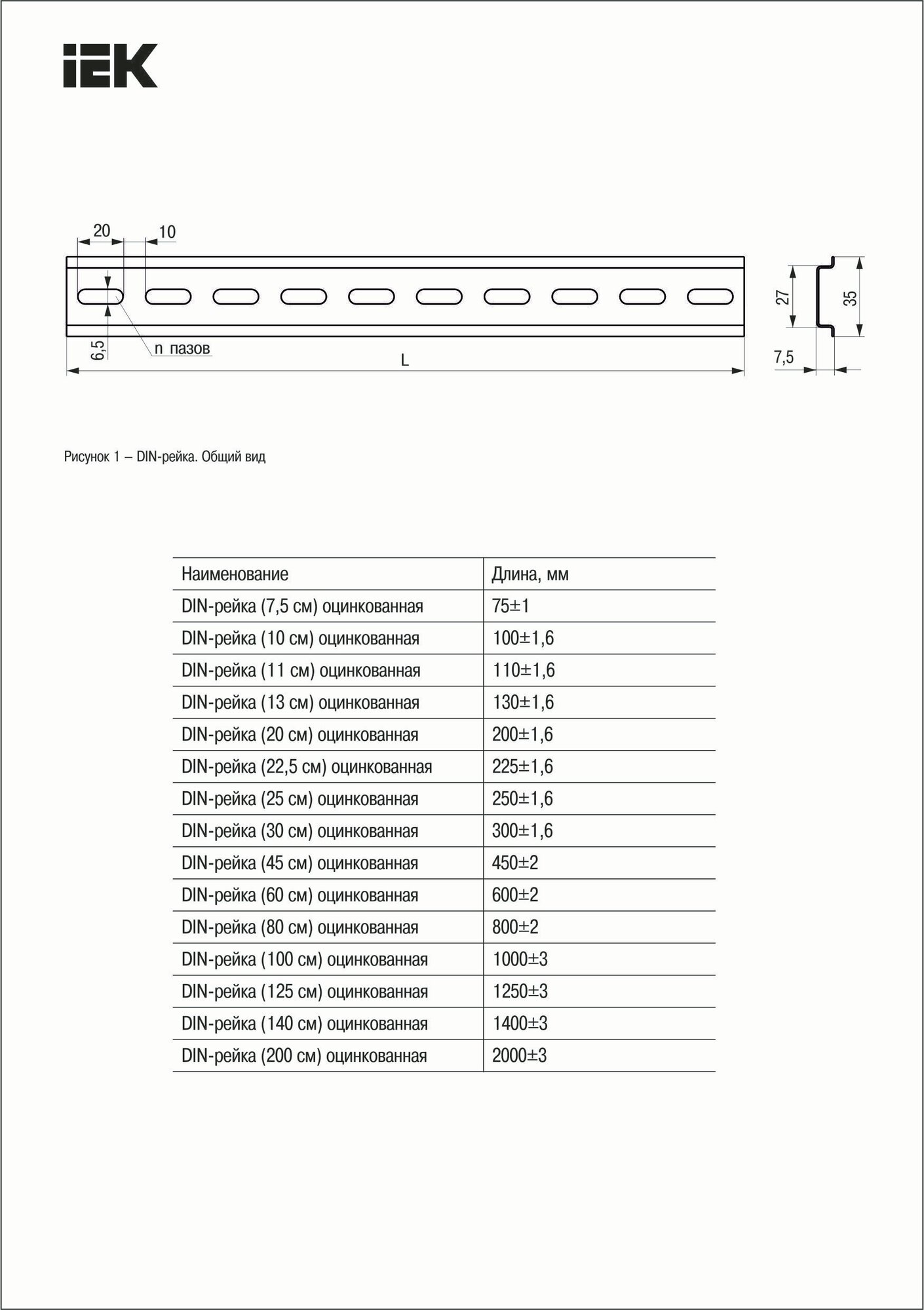 | Подробная комплектация | DIN-рейка L600 оцинк. IEK YDN10-0060, 1 шт. |