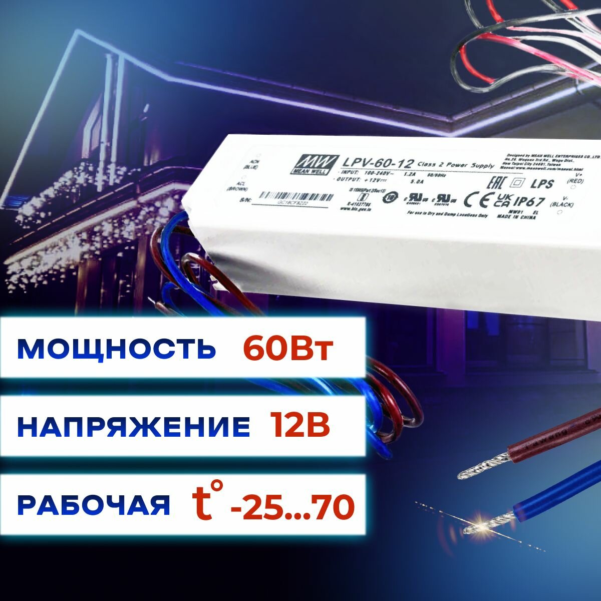 Блок питания для светодиодной ленты 60Вт, IP67 интересное: