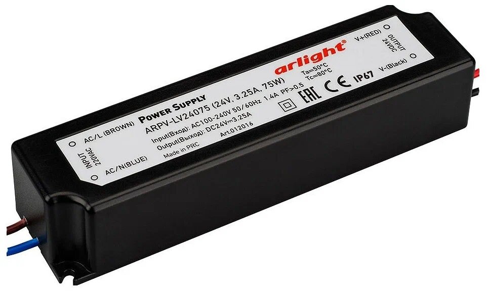 012016 Блок питания ARPV-LV24075 (24V, 3.1A, 75W) (Arlight, IP67 Пластик, 2 года) интересное: