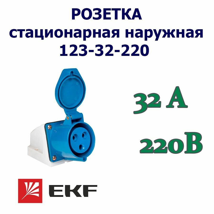Розетка силовая 123 (1штука) стационарная наружная 2Р+РЕ 32А 220В IP44 EKF PROxima интересное: