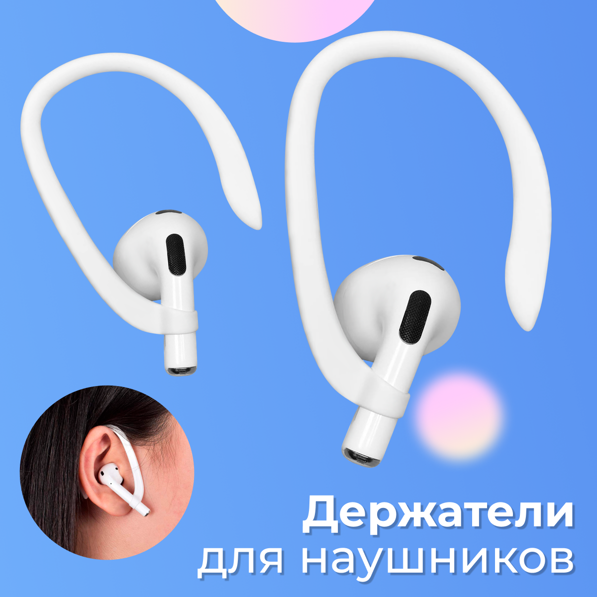 Силиконовый держатель для блютуз наушников Apple Airpods 1 и 2 / Заушное крепление для беспроводных наушников Эпл Аирподс 1 и 2 / Белый