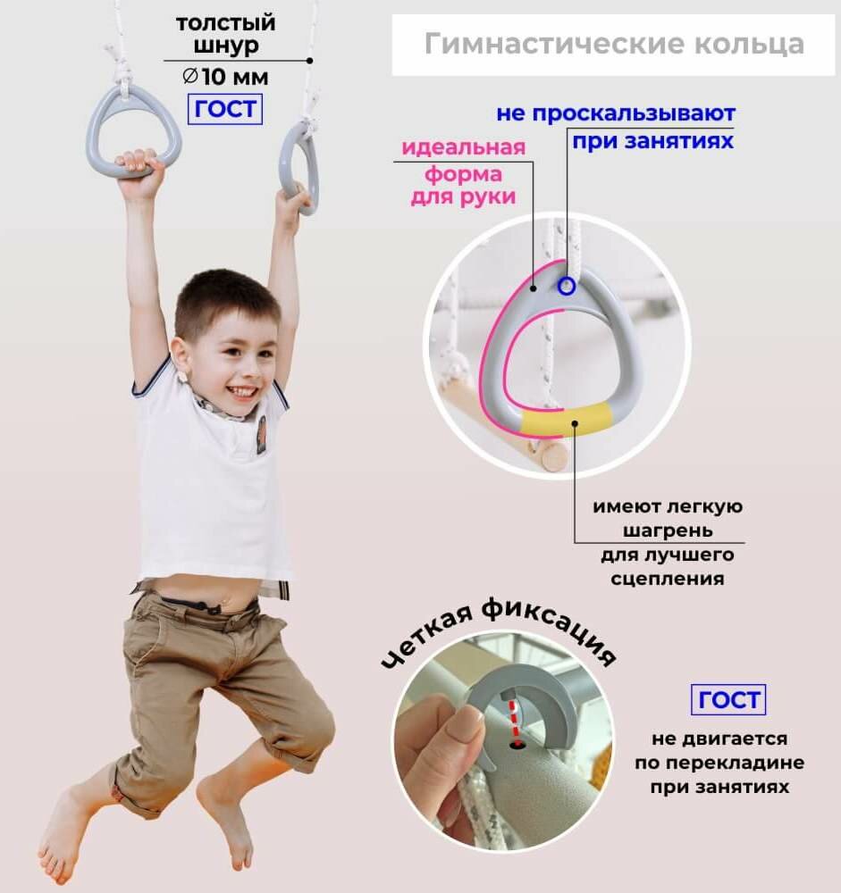 | Комплектация | гимнастические кольца / канат / качели / лестница / трапеция / турник / турник-брусья |