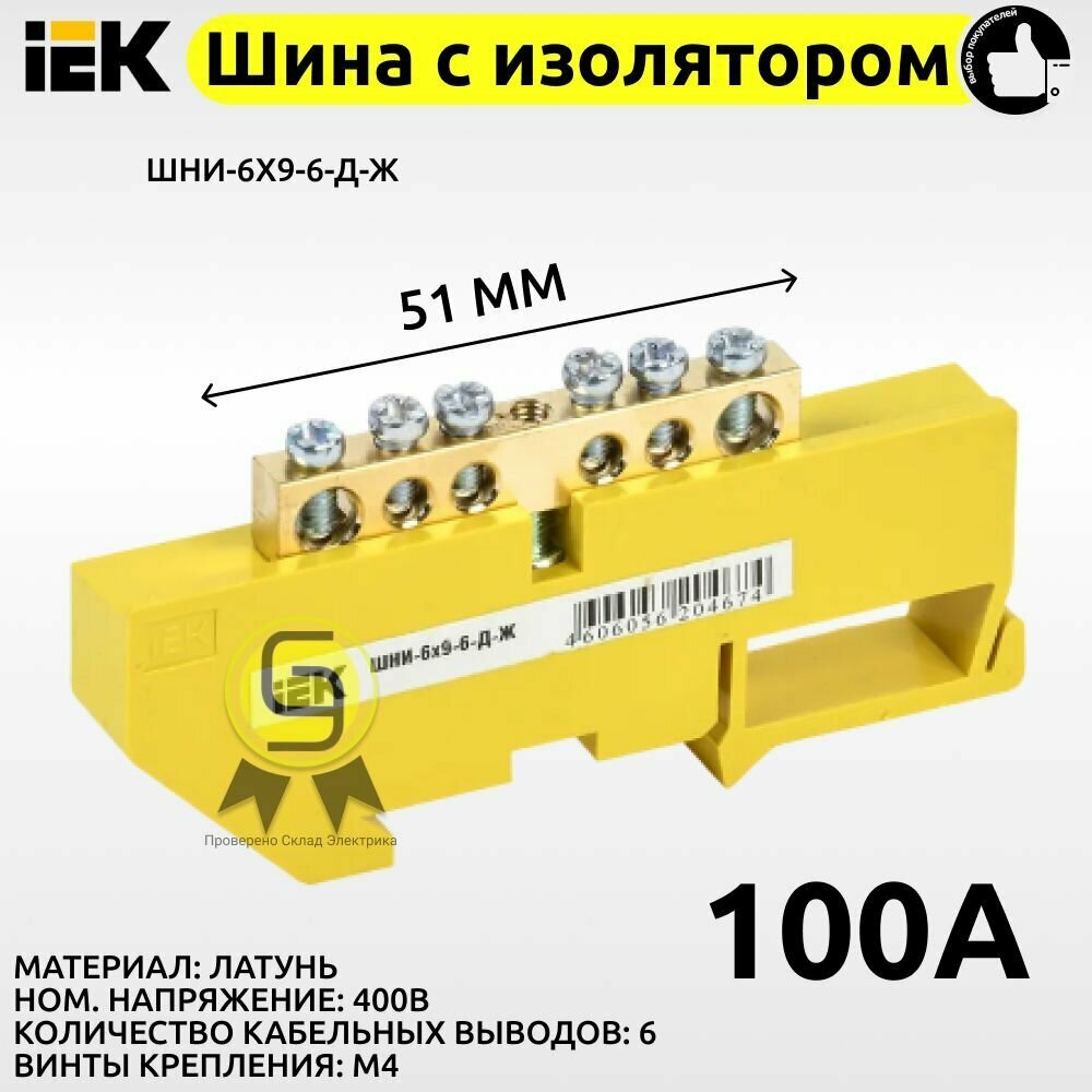 Шина PE «земля» в корпусном изоляторе на DIN-рейку ШНИ-6х9-6-К-З (6отв.) интересное: